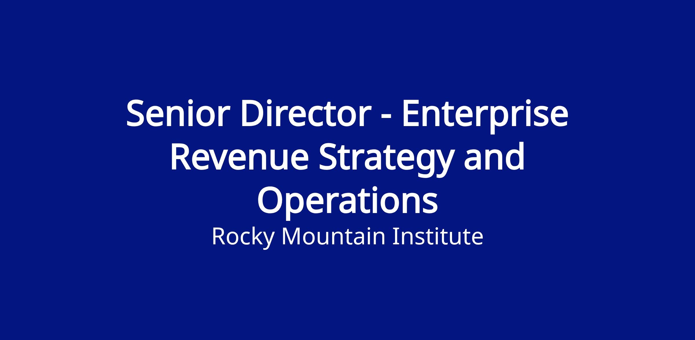 Lead enterprise-wide revenue strategy, multi-year planning, forecasting, and scenario analysis across all revenue streams, ensuring alignment with RMI’s organizational strategy and financial plans.