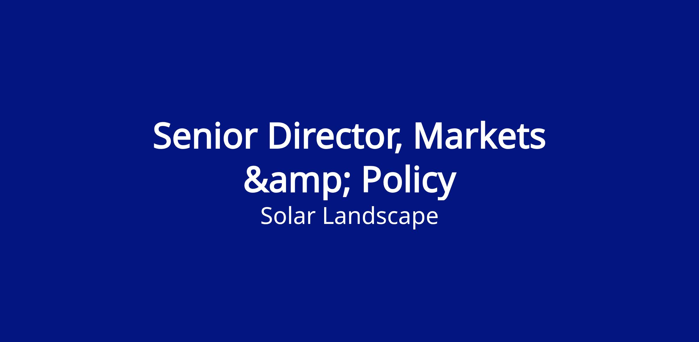 Solar Landscape is hiring a Senior Director, Markets & Policy to lead the company’s policy strategy, regulatory engagement, and program execution across its existing markets, while also supporting targeted legislative efforts to enable expansion into new states.