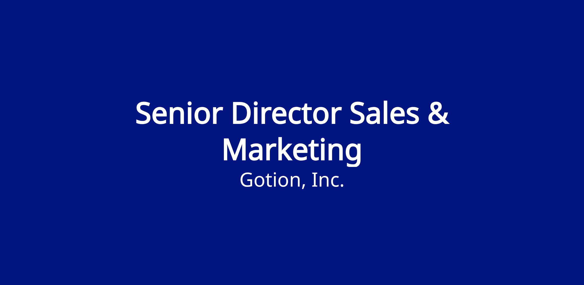 Job Title: Senior Director, Sales & Marketing