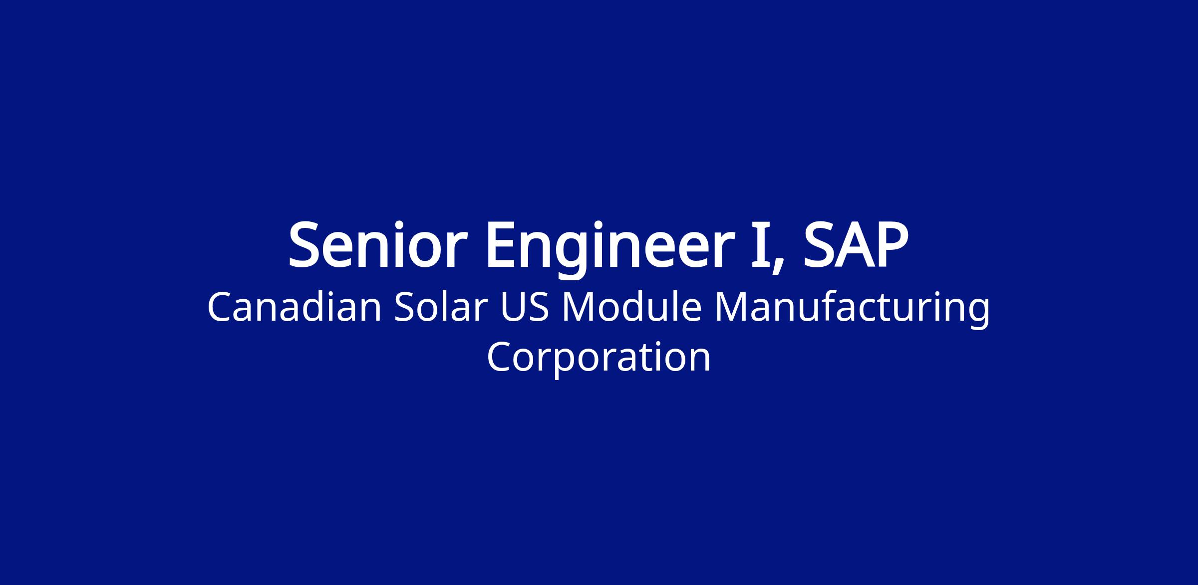 Canadian Solar Inc. is an Equal Opportunity Employer (EOE). Qualified applicants are considered for employment without regard to age, race, color, religion, sex, national origin, sexual orientation, disability, or veteran status.