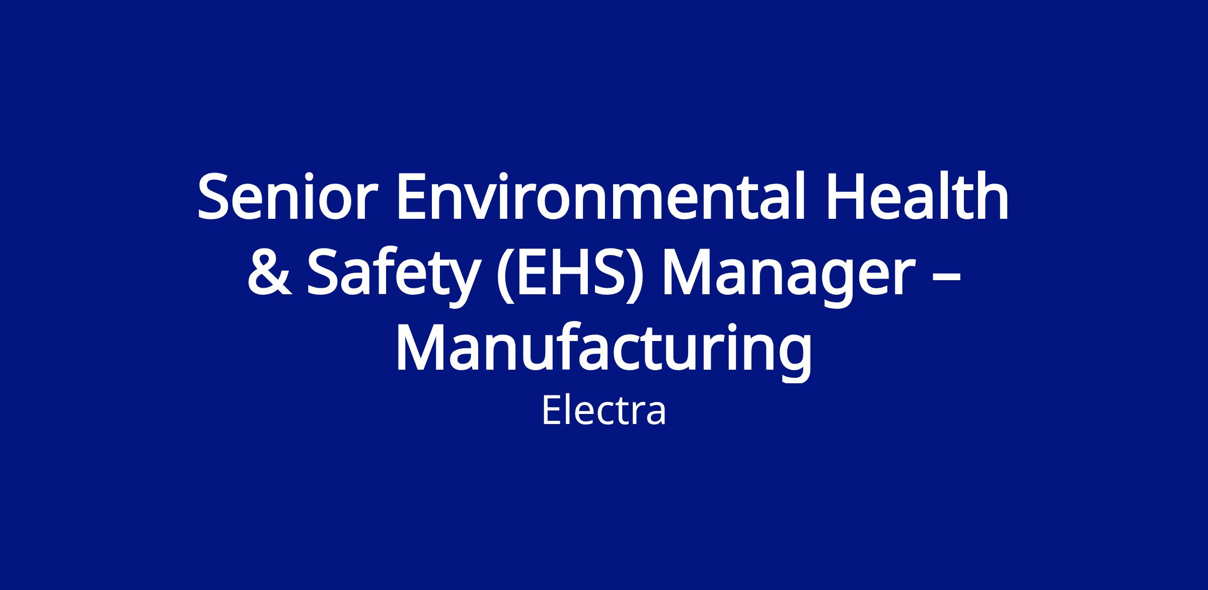 The Senior Environmental Health & Safety (EHS) Manager will have primary responsibility for the Broomfield site operation’s EHS scope and duties and secondary responsibility for Electra corporate EHS program development. In such capacity, this person will lead the environmental, health, and safety programs at our Broomfield, Colorado manufacturing facility. This individual will play a critical role in assisting with developing safety systems from the ground up, ensuring compliance, and fostering a strong safety culture in a heavy industrial environment.