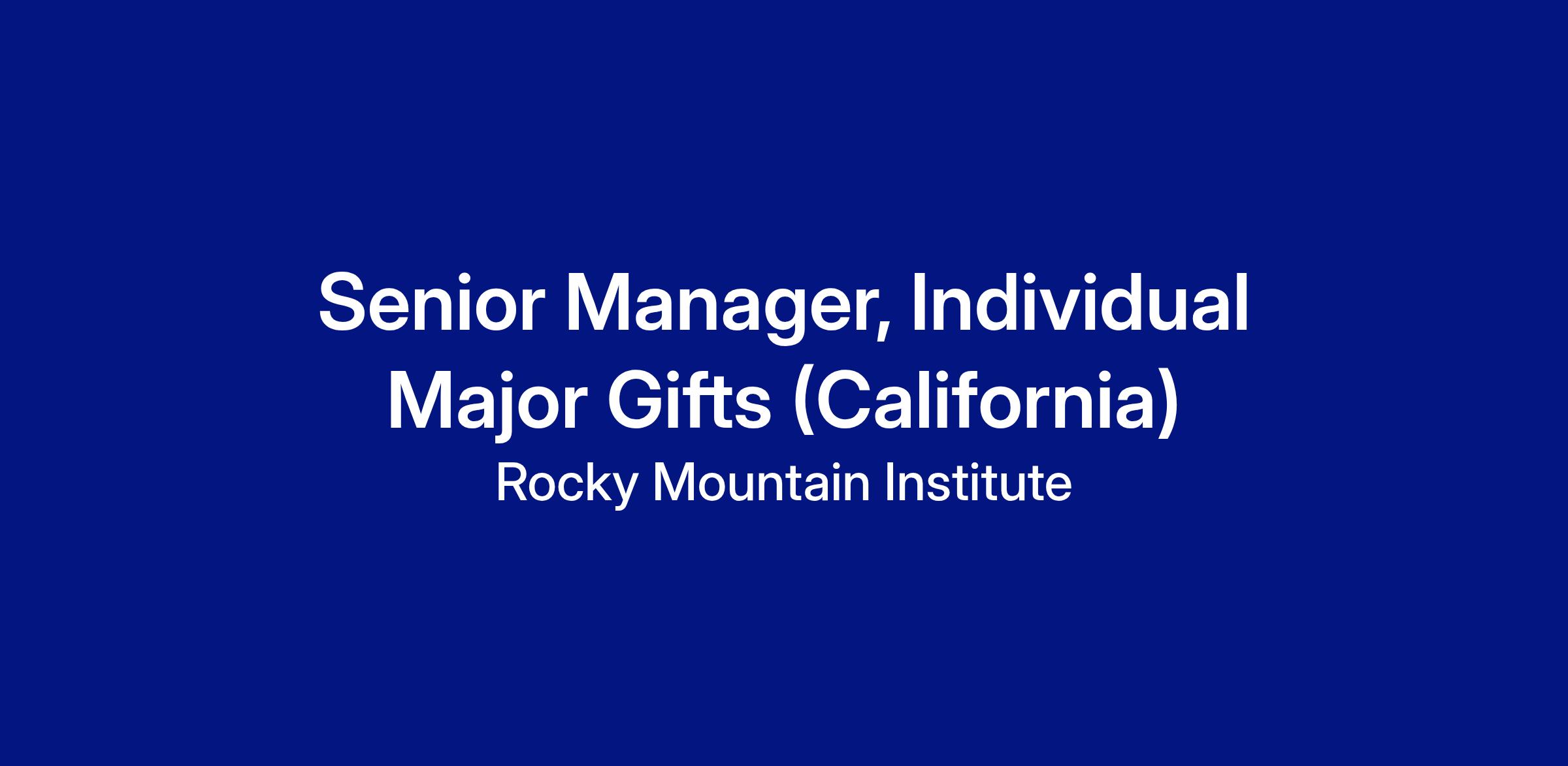 RMI seeks a dynamic Senior Manager based in California to join its team focused on individual and family philanthropy. This role is responsible for securing leadership gifts of $100K+ from individuals and family offices in support of building a sustainable future powered by affordable, resilient, clean energy. The position advances RMI’s highest-priority initiatives, including RMI’s Global Research Agenda the Acceleration Fund, legacy giving, and unrestricted giving through strategic, end-to-end donor engagement that drives sustained philanthropic support. The position reports to the Development Director, Individual Giving.