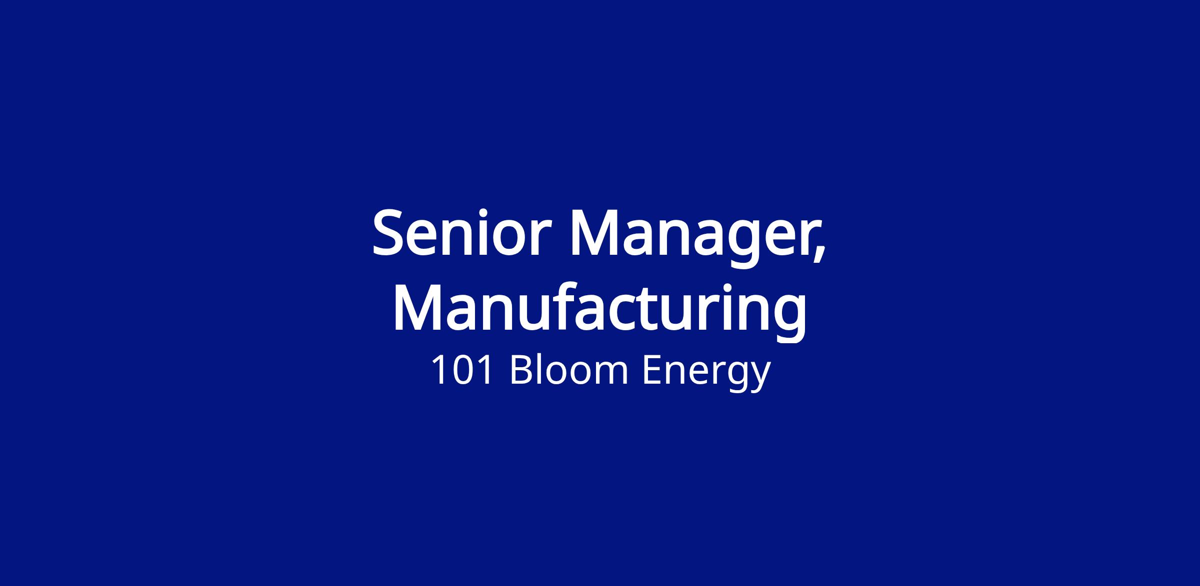 We are looking for a Senior Manufacturing Manager to join our team in one of today’s most exciting technologies. This role will report to the Sr. Manager, Manufacturing and based in Fremont, CA. This is a fully on-site, in office role.