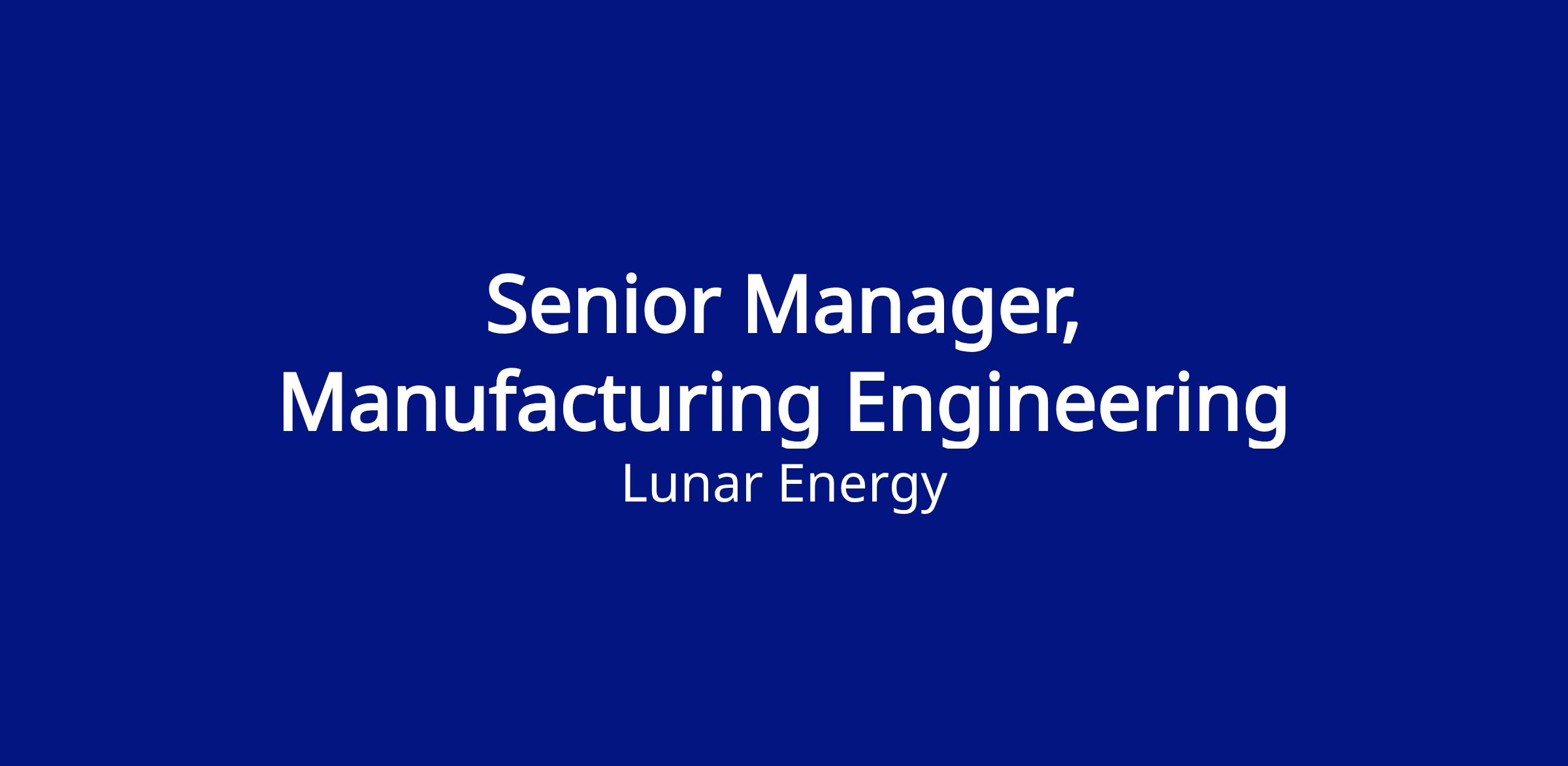 The Manufacturing Engineering team at Lunar Energy is responsible for developing the processes and equipment to manufacture our products at scale. Working closely with internal design teams, external equipment vendors, and manufacturing partners, the members of this team are part engineer and part project manager to ensure the right solutions land on time, and meet our requirements for capacity, quality and cost. We are looking for an experienced, motivated, and highly collaborative leader to manage and grow this important discipline at Lunar Energy.