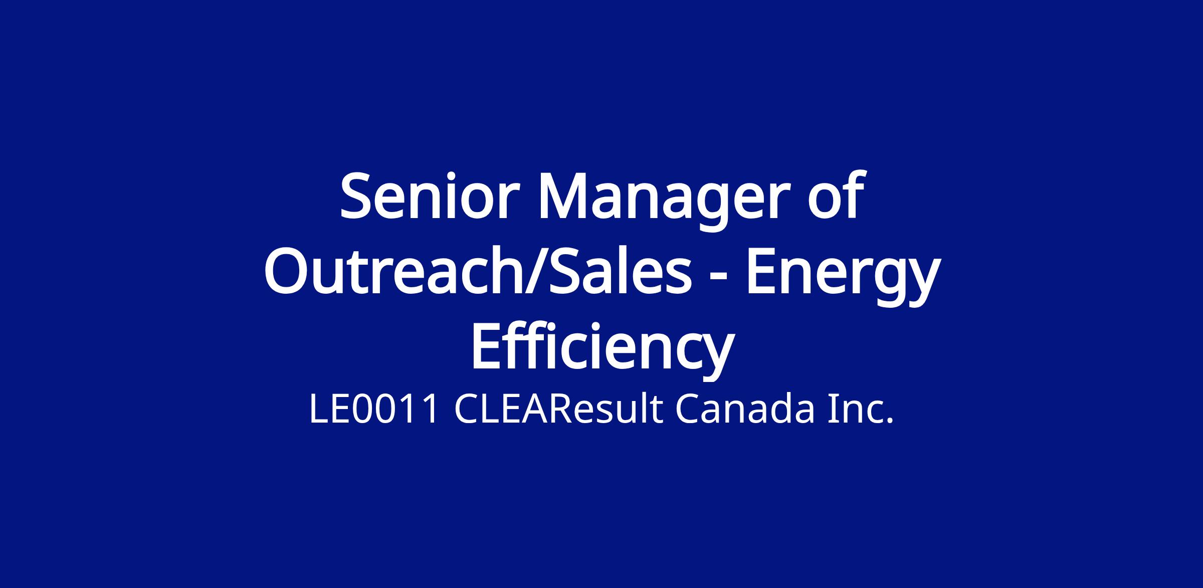 To join our team as a Senior Outreach Manager for the IESO Save On Energy Business Retrofit Program covering the Central and Southwest Ontario regions.