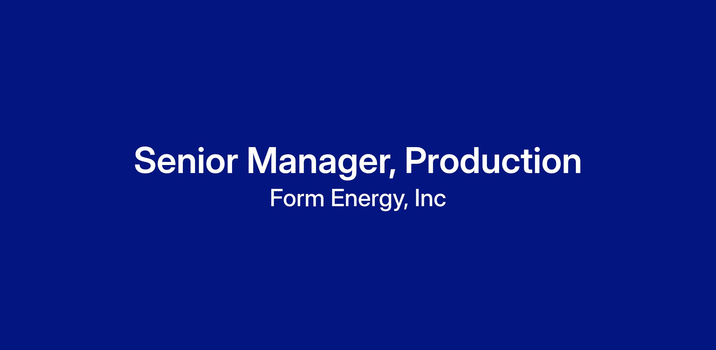 We are seeking a highly skilled and experienced senior manager of production within the manufacturing operations department to drive forward the manufacturing of Form Energy’s iron-air batteries. This leader will focus on ramping our manufacturing efforts, drawing upon your operational experiences to select and implement best practices across various areas within the company and leading best-in-class methodologies for various manufacturing challenges. Your primary focus will be driving production-based systems and projects, but will extend into areas of inventory management, quality control, training, supply chain, and engineering.