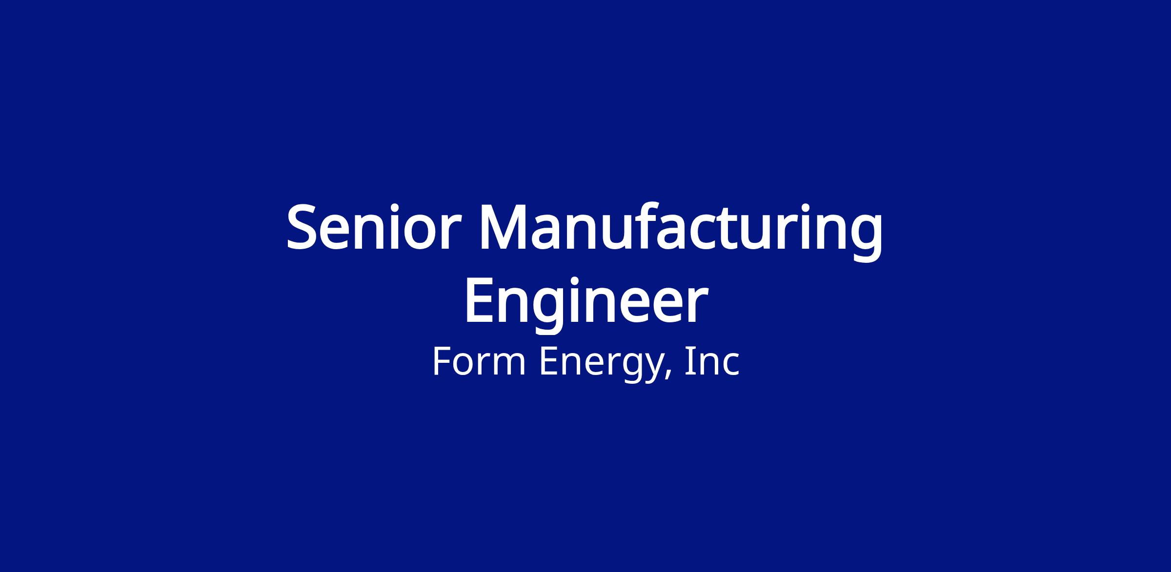 Form Energy is hiring a Manufacturing Engineer to join our world-class engineering team. Our team is responsible for specifying, scaling, and sustaining the equipment and processes that enable high-quality electrode manufacturing for Form Energy’s Iron-Air multi-day battery.