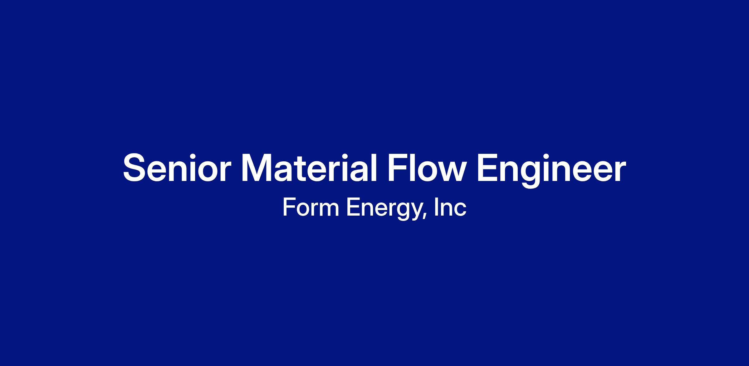 Join Form Energy's Industrial Engineering team as a Senior Material Flow Equipment Engineer. You will own the end-to-end design, implementation, and optimization of highly automated, scalable material flow systems—including AGVs, AMRs, conveyors, and ASRS—critical for high-volume electrode manufacturing of our Iron-Air battery. This role is essential for driving operational excellence and is a great opportunity to be part of the development of a cutting edge product!