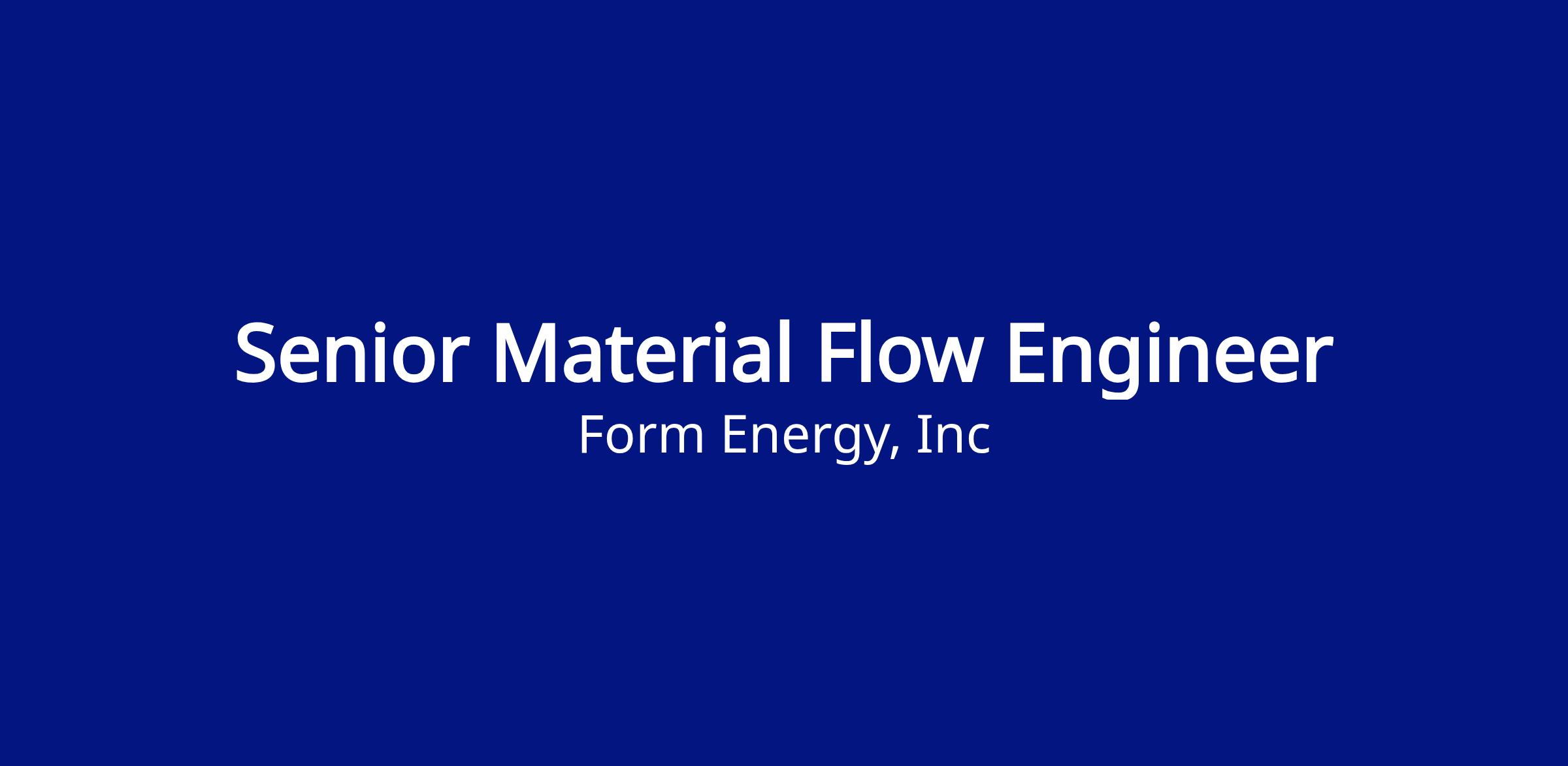 Join Form Energy's Industrial Engineering team as a Senior Material Flow Equipment Engineer. You will own the end-to-end design, implementation, and optimization of highly automated, scalable material flow systems—including AGVs, AMRs, conveyors, and ASRS—critical for high-volume electrode manufacturing of our Iron-Air battery. This role is essential for driving operational excellence and is a great opportunity to be part of the development of a cutting edge product!