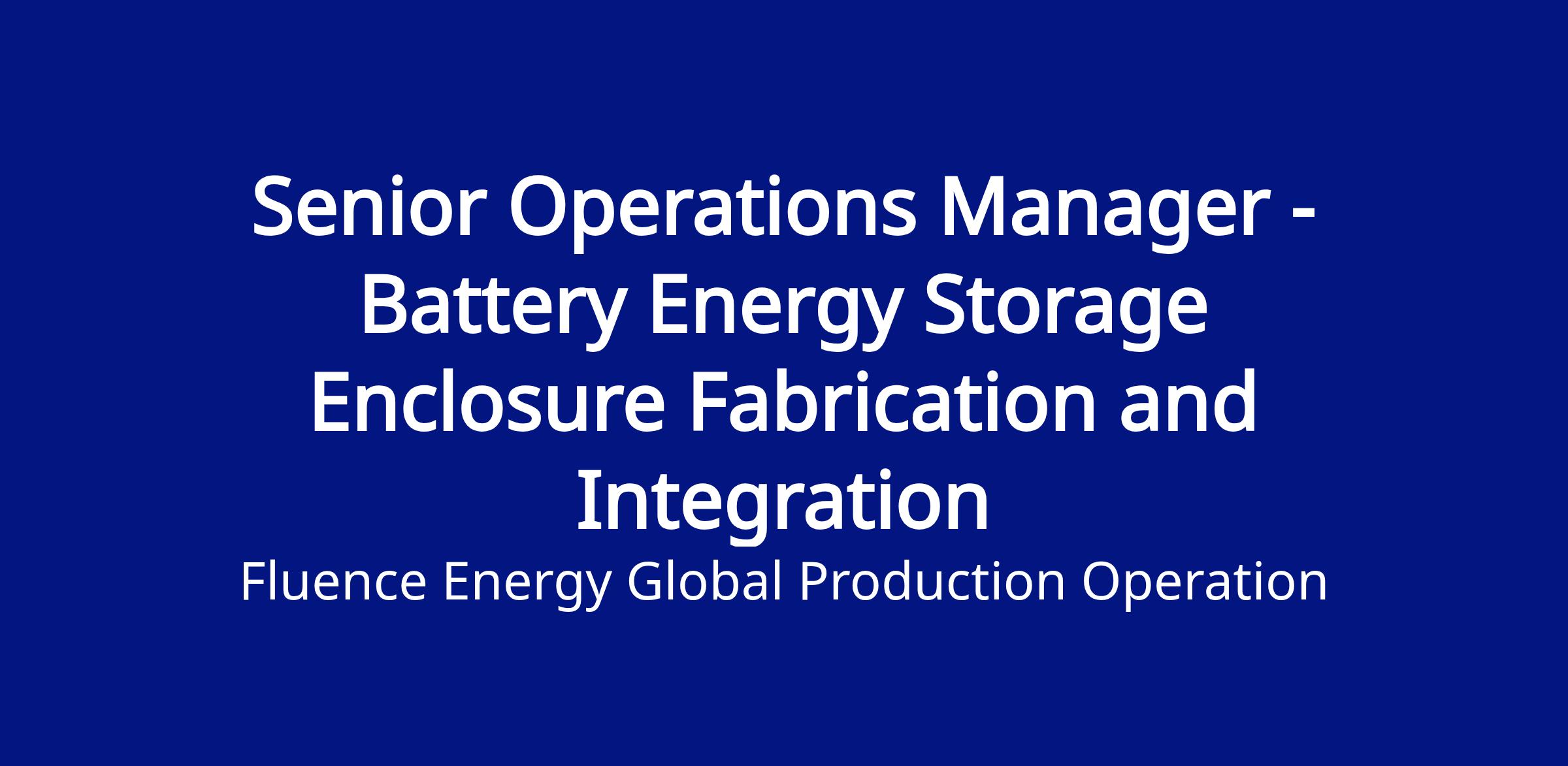 Senior Operations Manager - Battery Energy Storage Enclosure Fabrication and Integration
