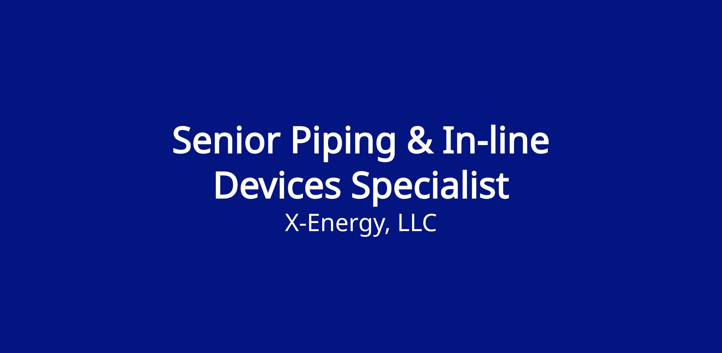 X-energy is hiring an experienced Piping & In-line Devices Specialist to join its team. This role is responsible for guiding specification, selection and design of piping for a wide variety of mechanical process and power generation system applications. It includes identifying requirements, performing design calculations, and selecting and specifying piping and in-line devices to ensure they meet all technical specifications and program/project requirements. Additionally, this role is responsible for providing expert opinions, based on technical information, to system owners and responsible engineers in the area of their expertise. This position is expected to be an expert on piping systems and in-line devices (including flow accelerated corrosion analysis, piping specifications, and stress analysis) and will provide recommendations on all aspects of piping design including material selection, routing, support design, flow characteristics, erosion/corrosion prevention, and lifecycle integrity.