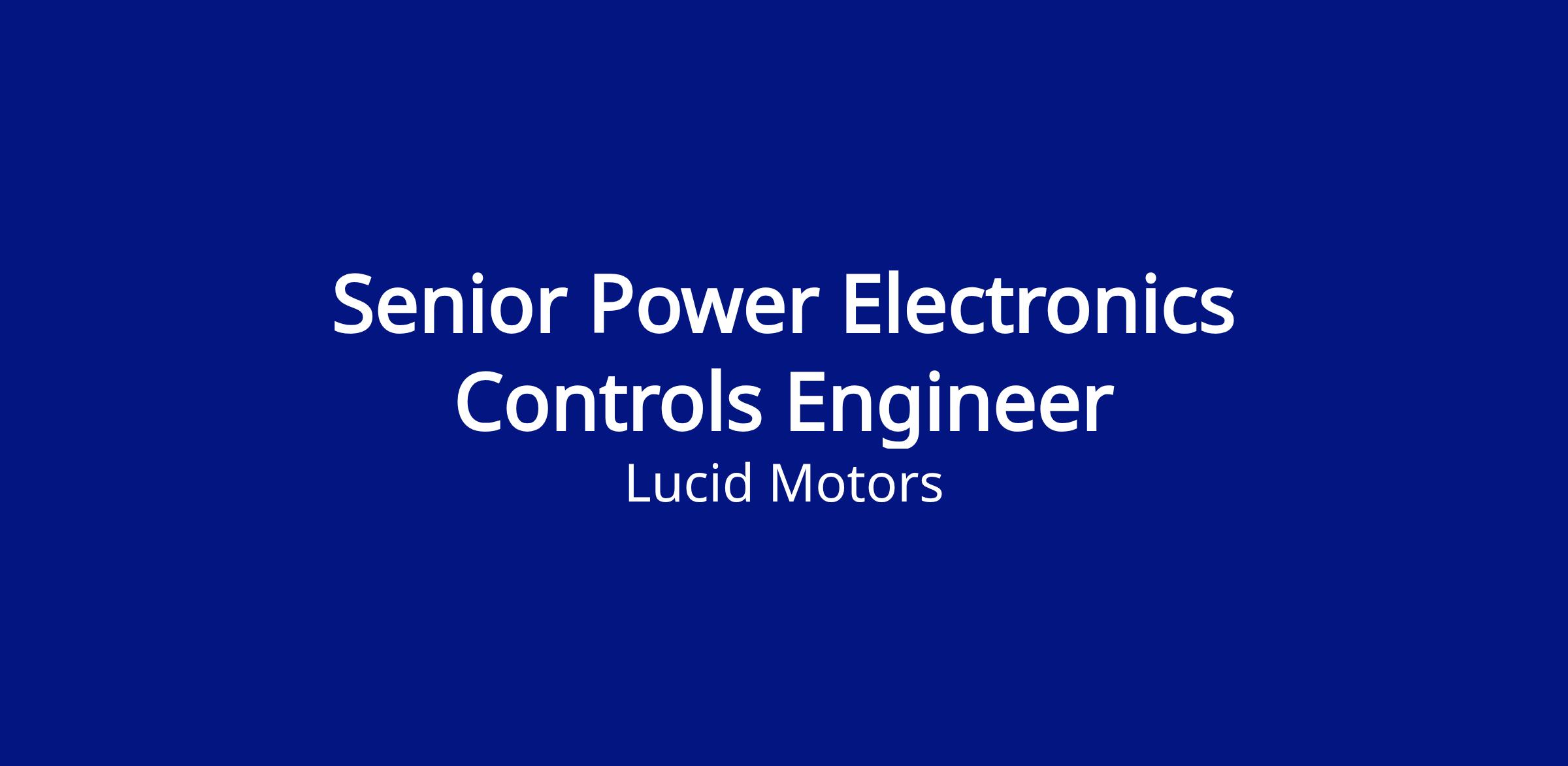 Job Title: Senior Power Electronics Controls Engineer