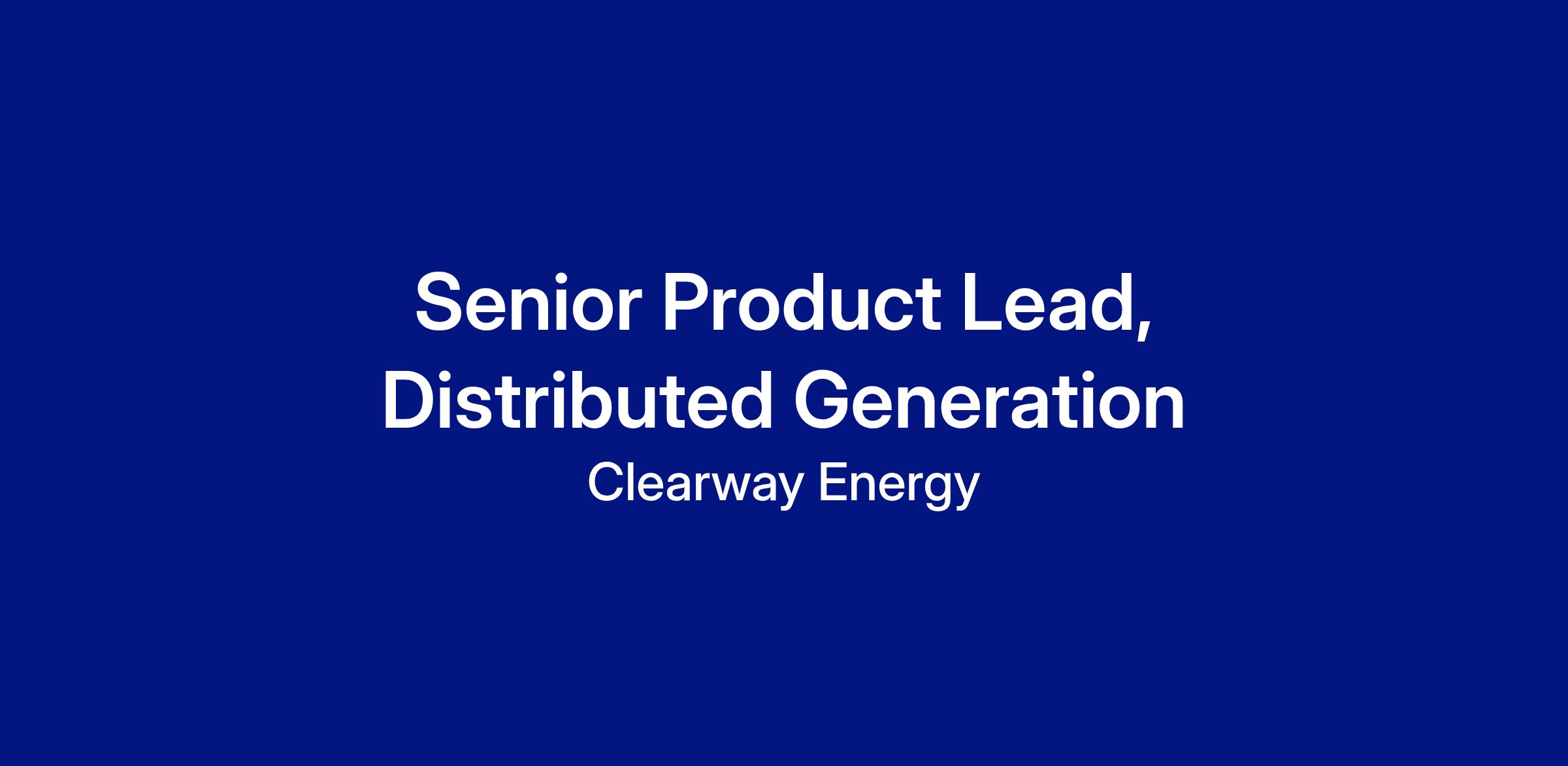 Reporting to the Senior Manager, Customer Operations within the Asset Management department, the Senior Product Lead is responsible for leading the functional design and direction of the Distributed Generation software platforms. The primary objective is to lead the development of roadmaps and technology stacks to support Clearway’s overall vision and strategy and improve Clearway's competitiveness in all markets.
