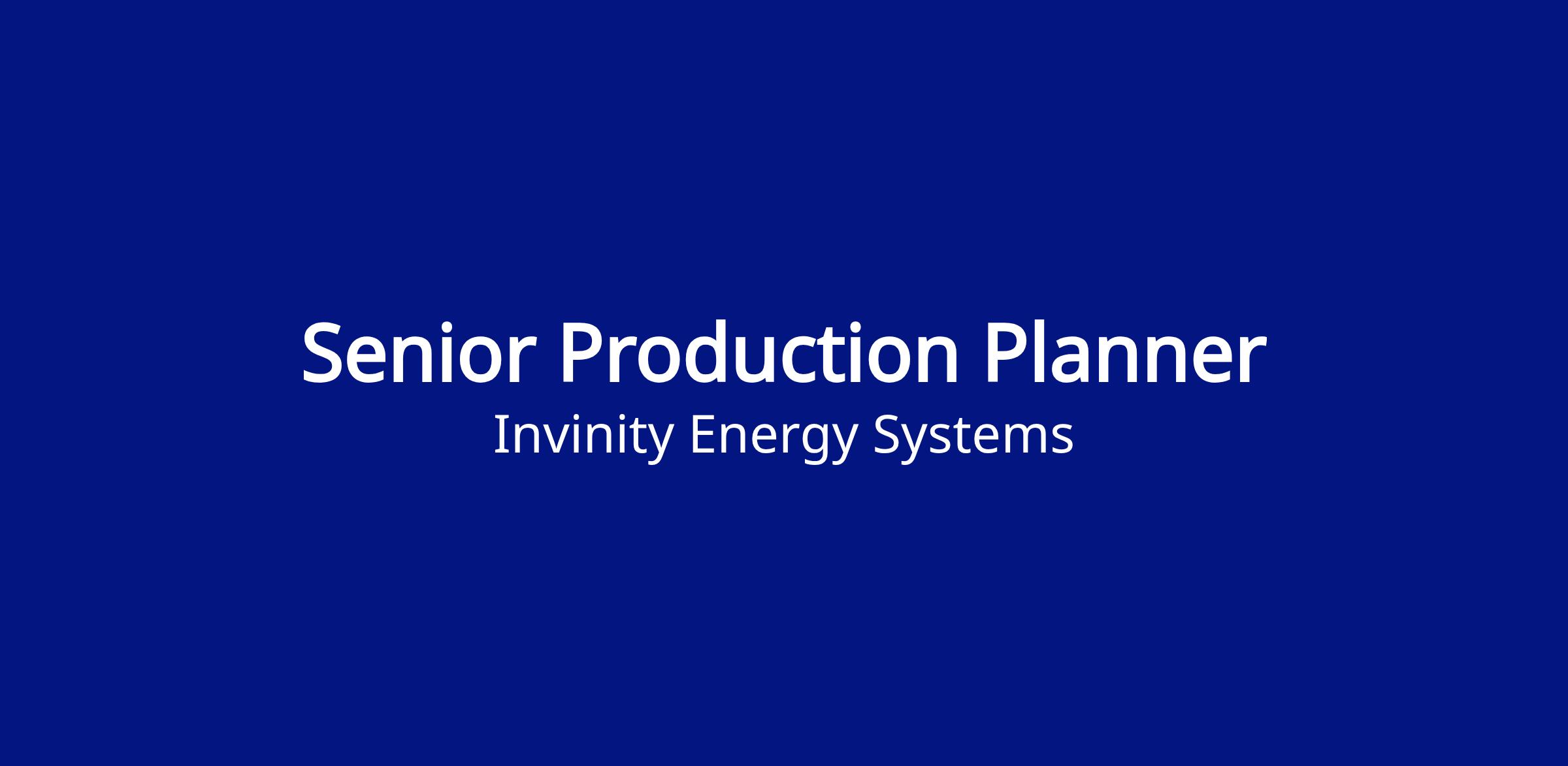 Invinity is deploying large-scale projects throughout the UK and internationally. Working closely with Supply Chain, Production, Finance and Sales teams you will oversee the development and execution of production schedules, with a primary focus on accurately predicting delivery dates and preventing delays.