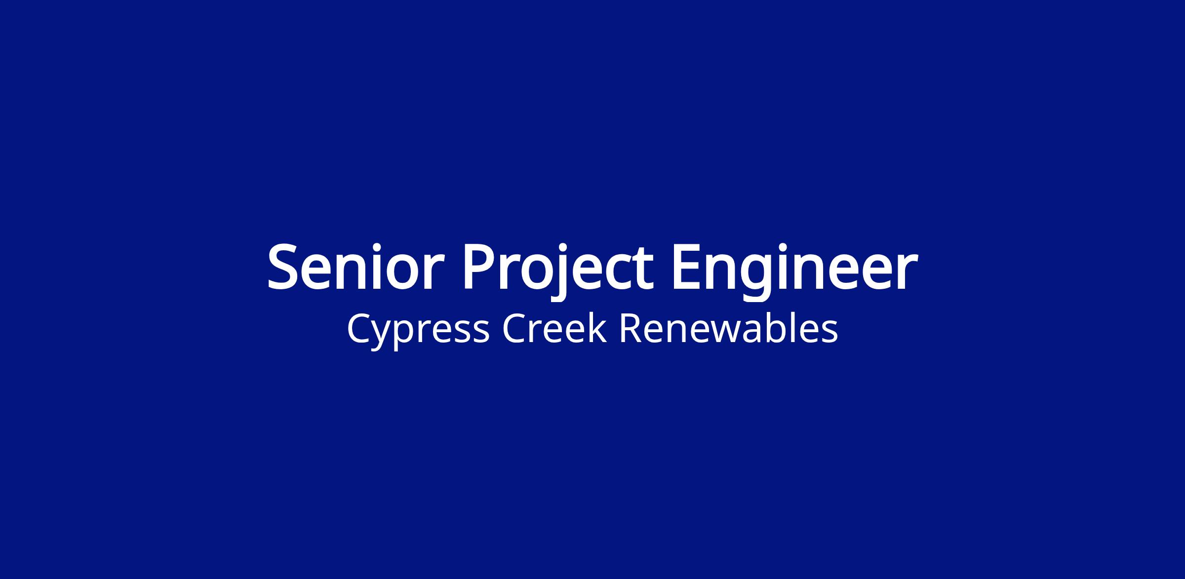 Cypress Creek Renewables is an equal opportunity employer and considers all qualified applicants without regard to race, color, religion, sex, sexual orientation, gender identity, national origin, age, disability, or veteran status. We are committed to providing a workplace that is inclusive and values diversity, and we encourage candidates from all backgrounds to apply.