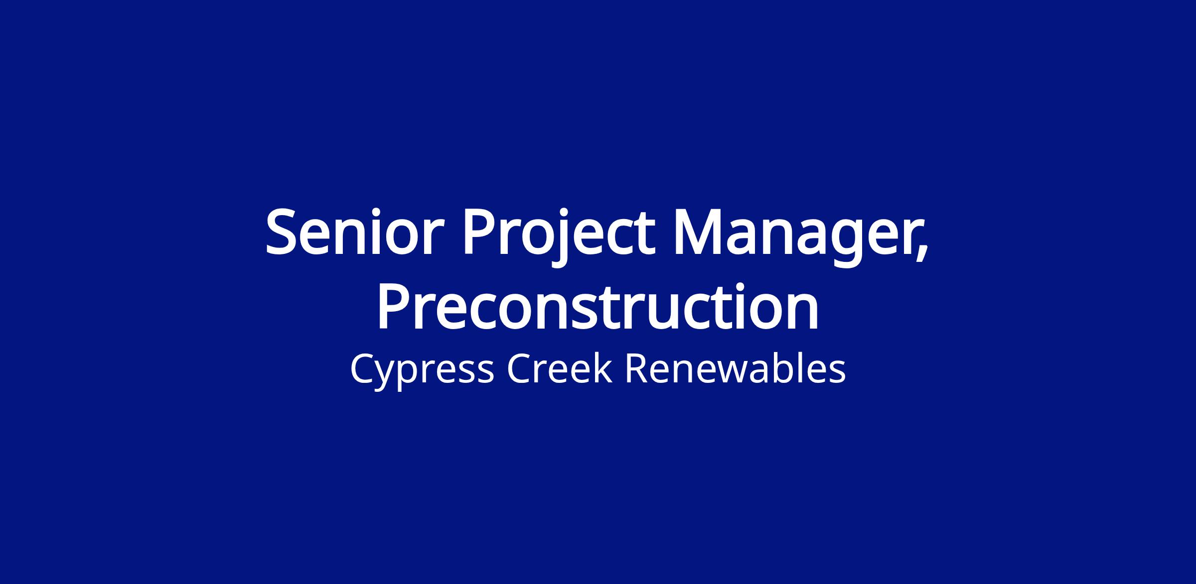 Cypress Creek, a renewable energy project developer and owner (the "Company") is seeking a Project Manager of Pre-Construction reporting to the Director of Pre-Construction.