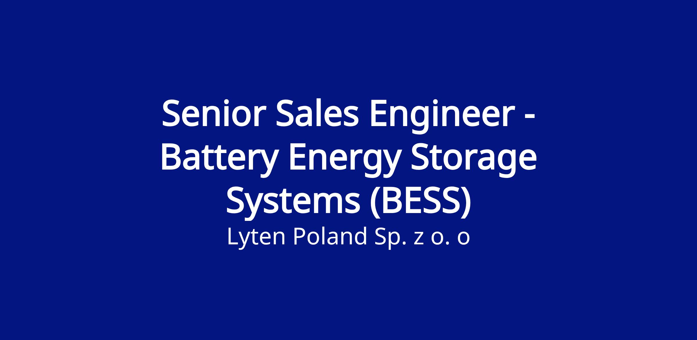 Lyten Poland is currently looking for a Senior Sales Engineer, who will sit at the intersection of engineering and business - supporting customers from the first conversation all the way to real-world implementation of BESS solutions.