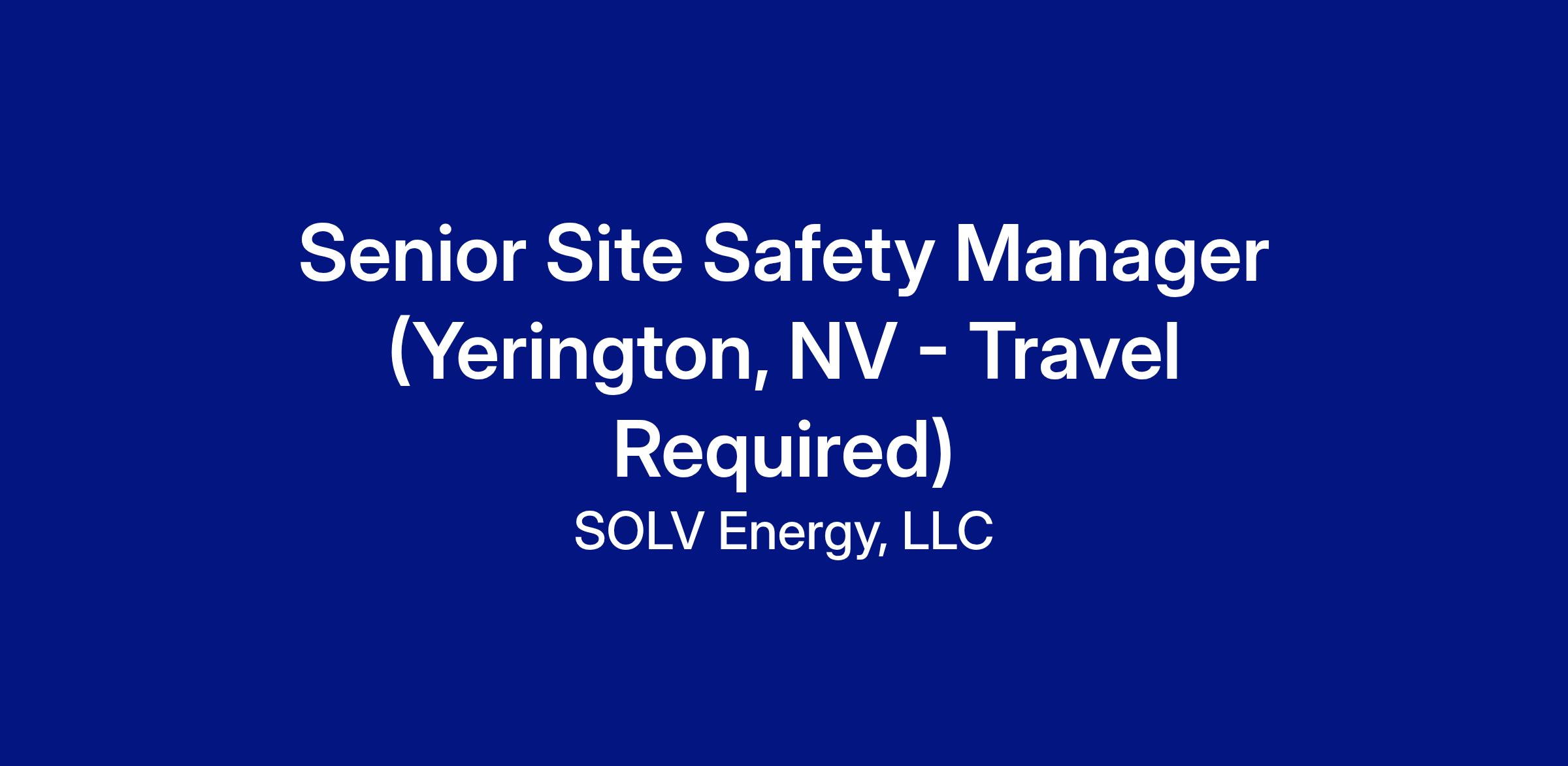 Senior Site Safety Manager (Yerington, NV - Travel Required)