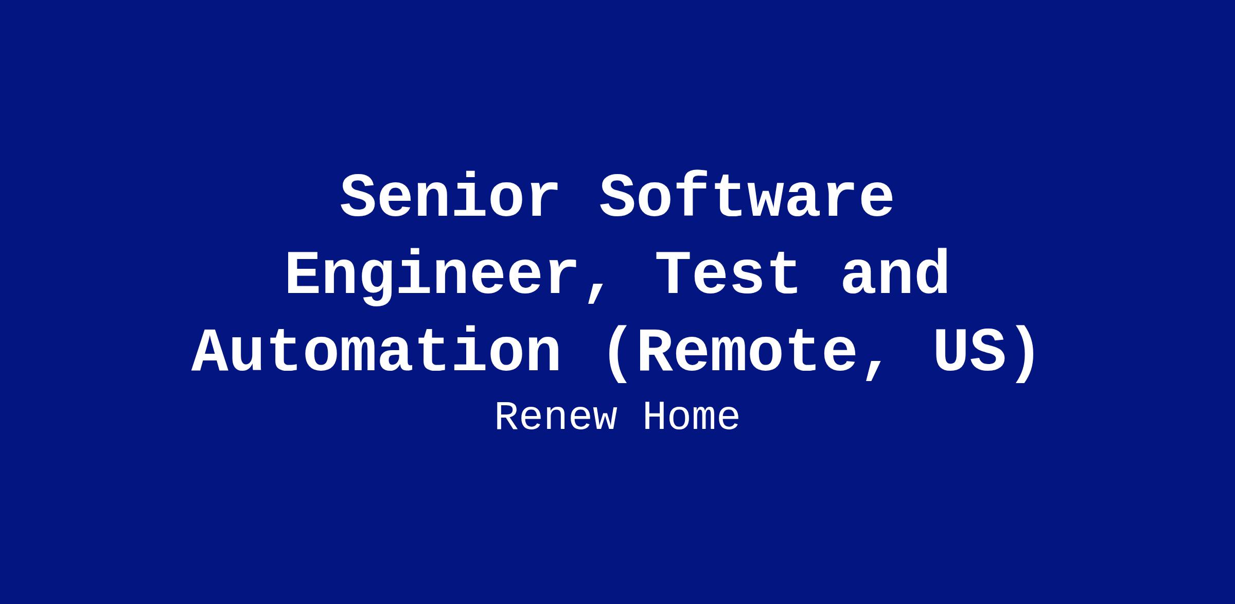 Renew Home is looking for a Senior Software Engineer in Test and Automation to join our team, and play a key role in establishing robust automation testing frameworks and culture within our organization.