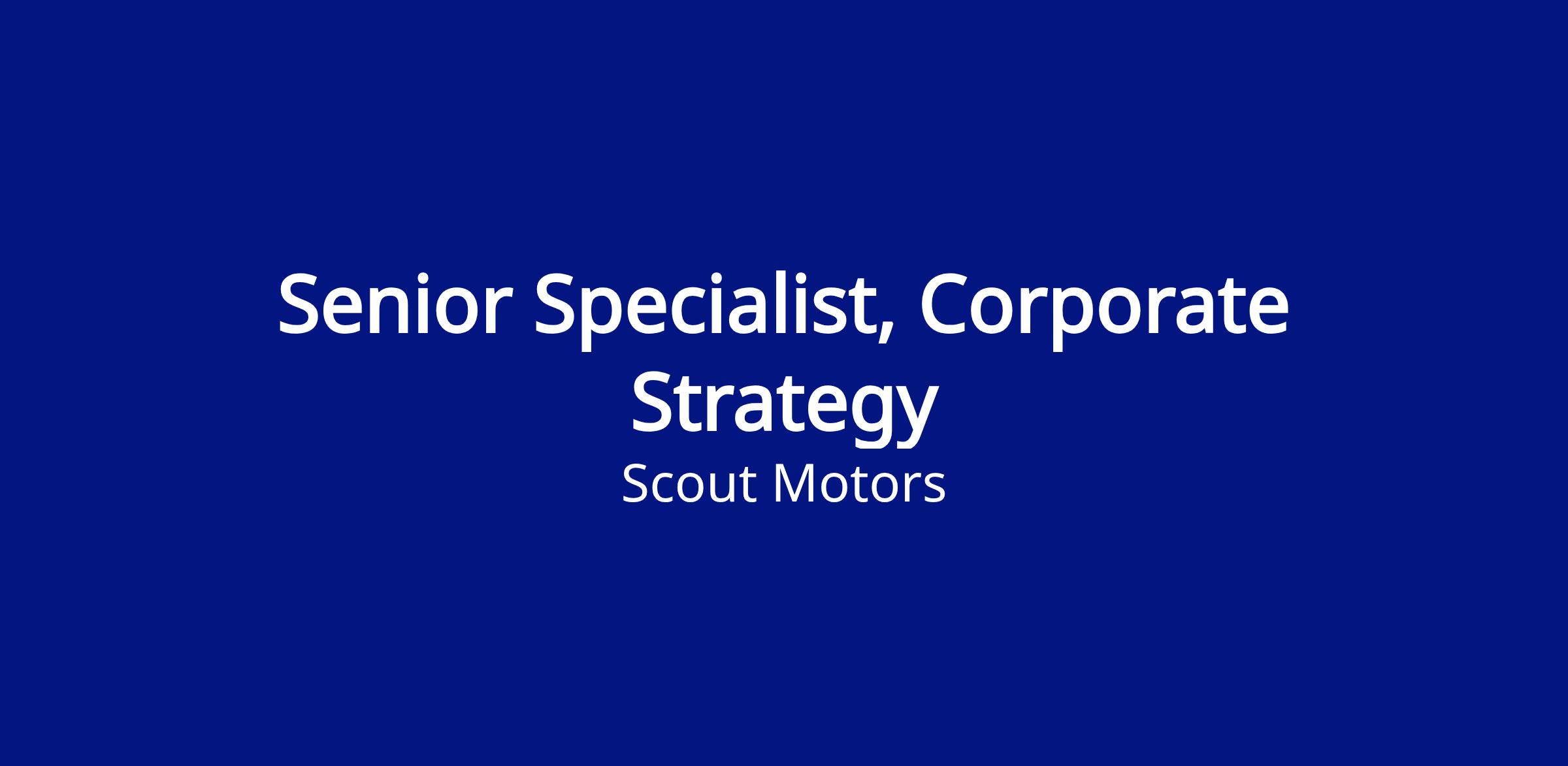 Scout Motors is seeking a Sr. Specialist, Corporate Strategy to support high-impact strategic initiatives, including partnerships, market expansion, and long-term value creation. This role is suited for an experienced strategist with strong business and strategic judgment who can evaluate new opportunities, shape executive narratives, and build trusted relationships with internal and external stakeholders.