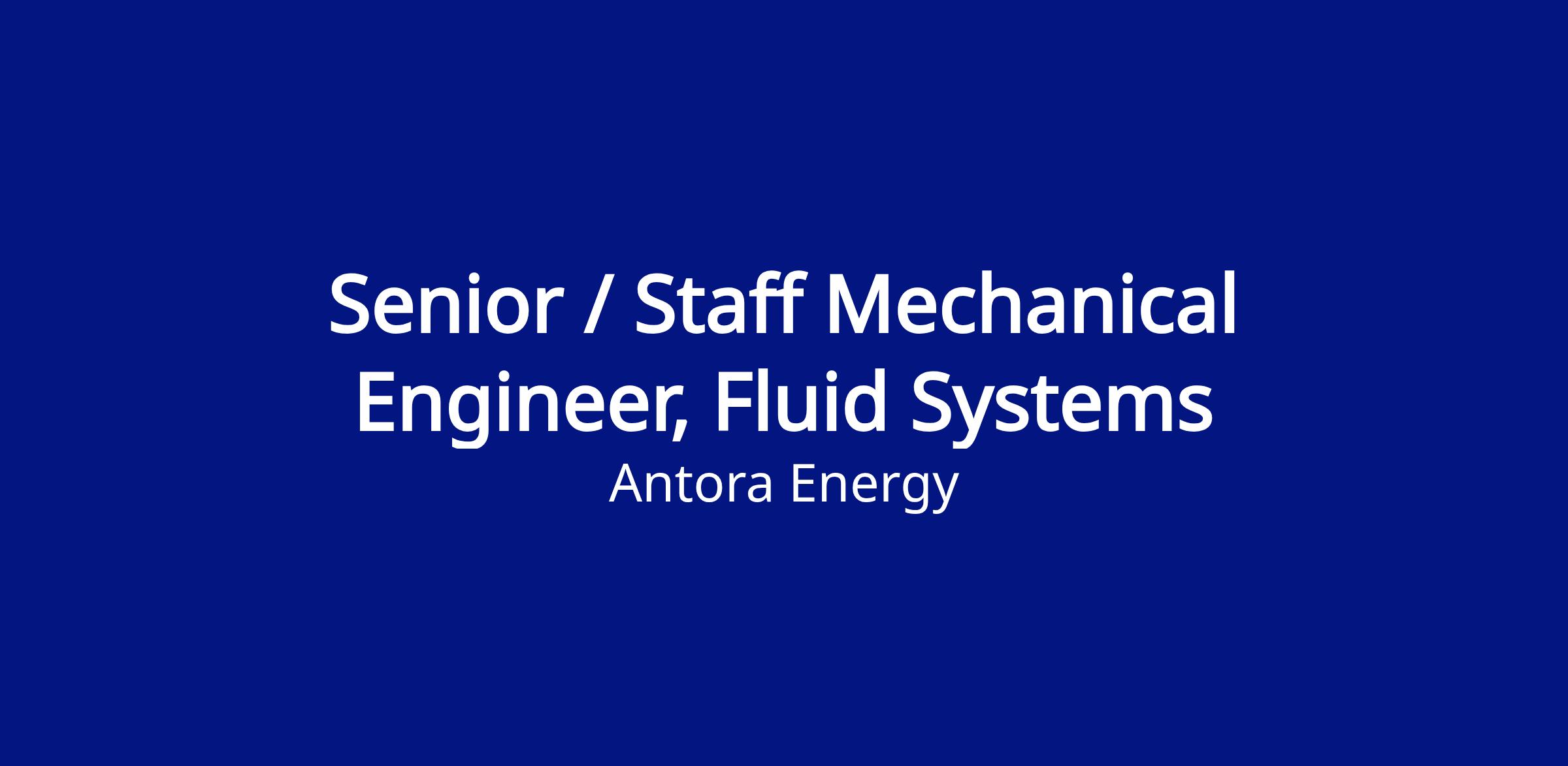 Antora is seeking a self-driven and passionate Senior or Staff Mechanical Engineer, Fluid Systems to join our Product Development Team. In this role, you will own the design, analysis, and validation of critical subsystems that make Antora’s thermal battery possible. Your work will directly accelerate the demonstration and deployment of a first-of-a-kind long-duration energy storage technology.