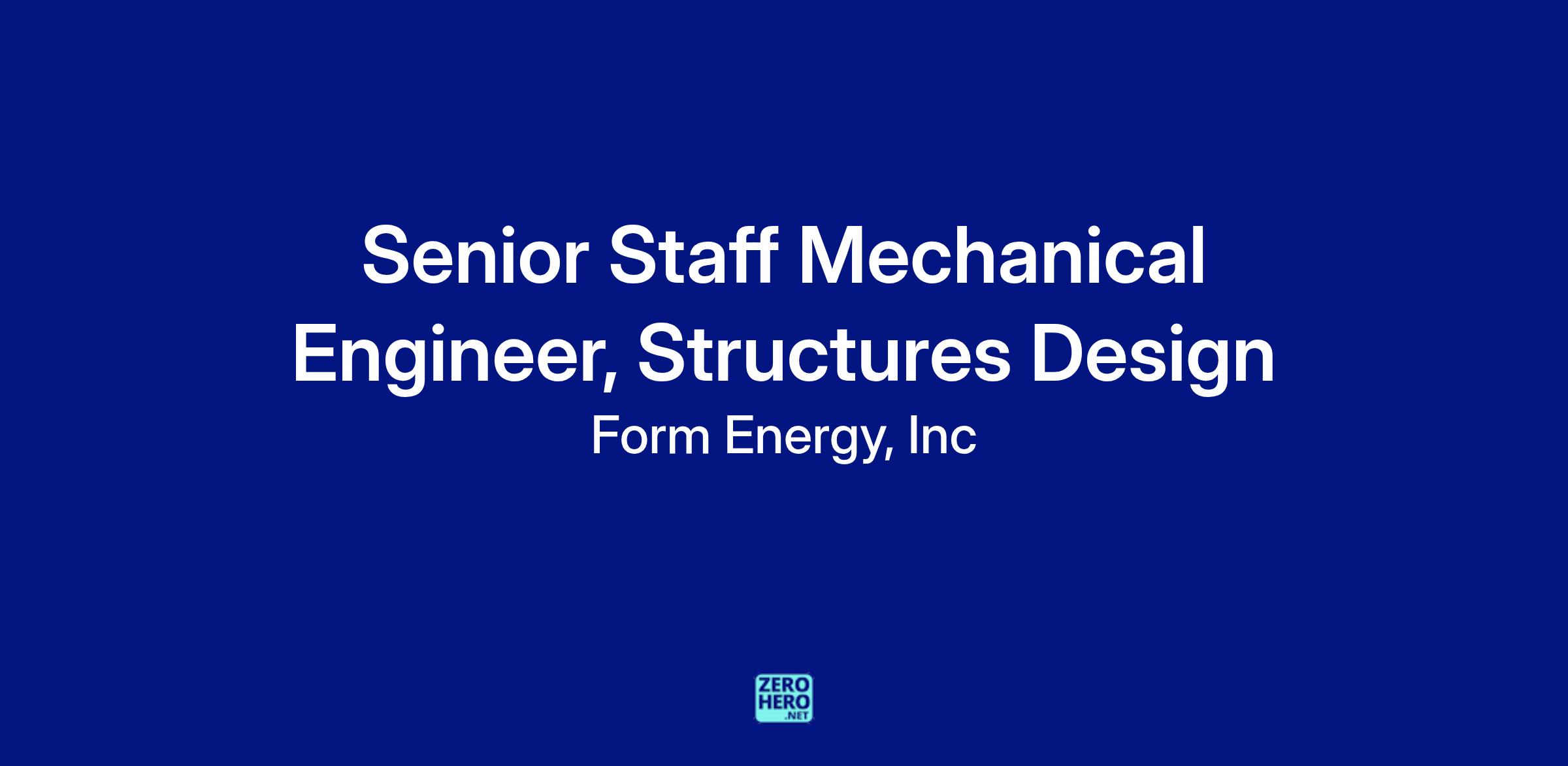 We're seeking a Senior Staff Mechanical Design Engineer to join our team and lead design efforts. You'll bring components and assemblies from concept to into mass production, with a strong emphasis on structural design, weatherproofing, and manufacturability of metal enclosures. As a problem solver, you'll creatively tackle mechanical design challenges and apply your design knowledge of sheet metal, weldments, plastics, and sealing systems for mass production. You'll work cross-functionally with teams on requirements definition, verification plans, and failure analysis to deliver a design that meets those requirements. Troubleshooting design problems as they arise and working to implement improvements will also be a part of your responsibilities. This is an exciting opportunity to be part of scaling our multi-day energy storage system at Form and contributing to a sustainable future. If this sounds like the perfect opportunity for you, apply now!