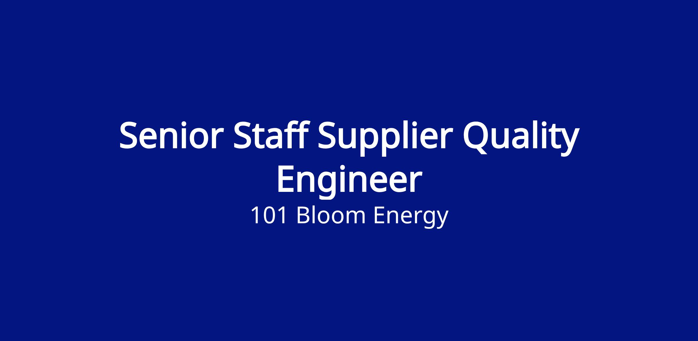 As a Principal Supplier Quality Engineer, you will be a part of the team responsible for setting and delivering the quality and reliability standards for our fuel cell components across Bloom Energy; you will work closely with supply chain and engineering as part of a cross functional team. We are looking for a Quality expert with a proven demonstrated track record of improving the quality from Design maintaining it throughout its full life cycle. We are looking for someone who is hands-on, can manage both long term trends and projects, and have extensive involvement in the tools and techniques used to assess and deliver product quality and reliability. The ideal candidate will be entrepreneurial, driven, energetic, detailed, team oriented and patient with data who delivers proven timely results. Comfortable in a dynamic environment with constant change / iteration of products / services.