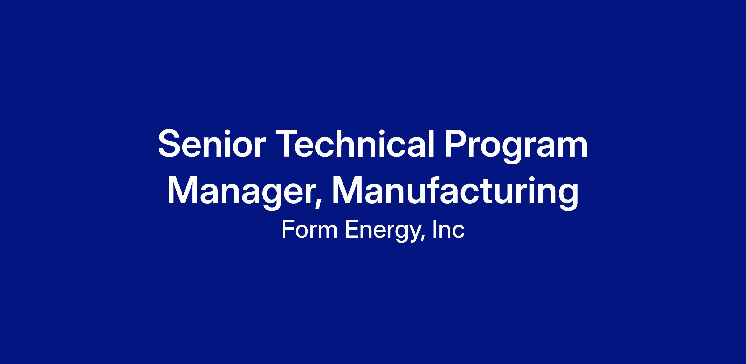 Form Energy is hiring a Senior Engineering Program Manager to take on a pivotal role in developing the strategy and driving execution of our first in-kind battery development and manufacturing programs. As part of the PMO (Program Management Office), you will bring the cross functional teams together and execute on the plan to transition the product from development to prototype then commercial manufacturing. This is an exciting opportunity to help shape and be part of the growth of a fast-moving company with breakthrough technology and an incredible mission!