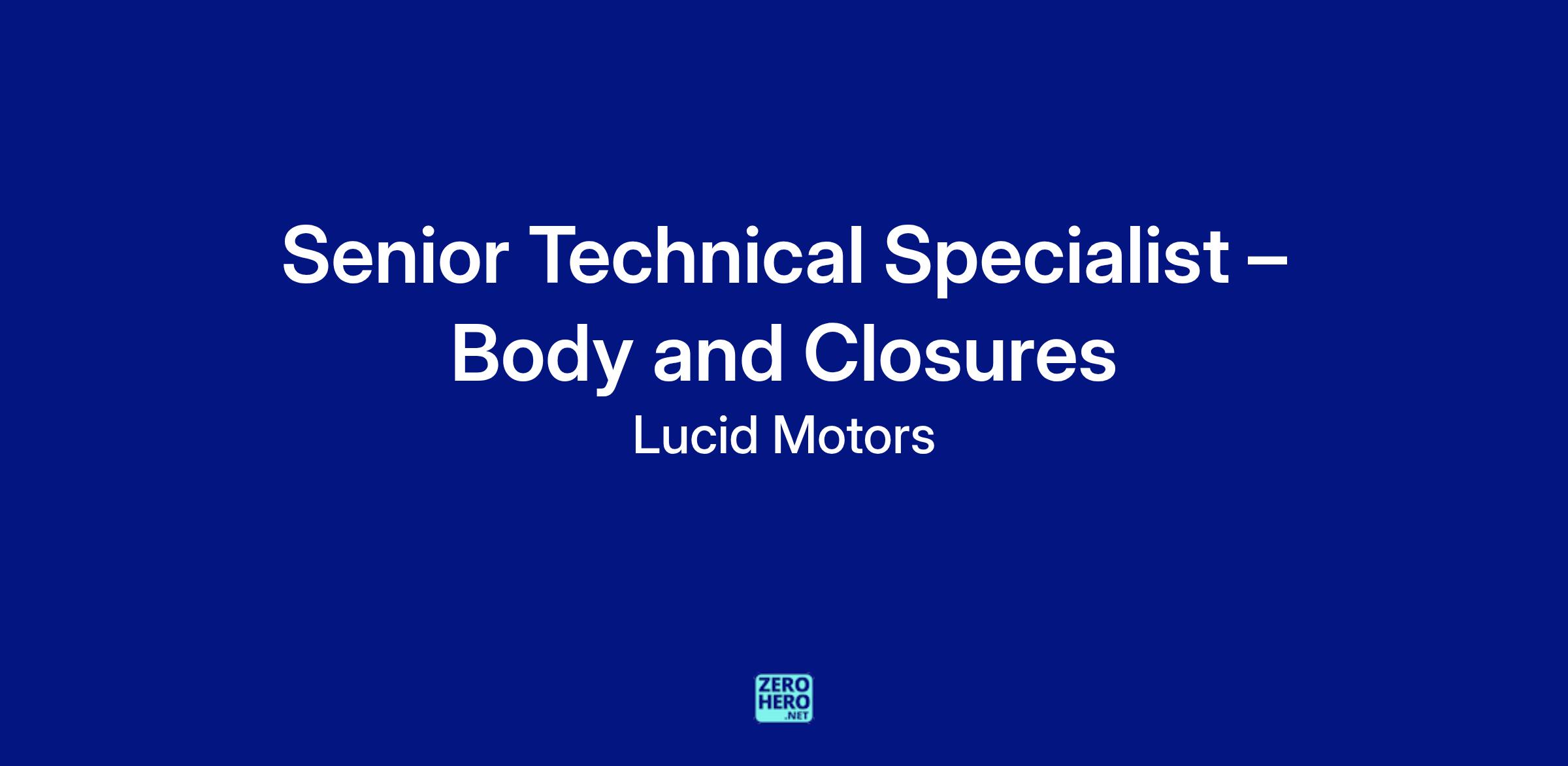 As a Senior Technical Specialist at Lucid, you will be responsible for delivering the best-in-class technical solutions for Body in White and Closures Systems across all Lucid programs: