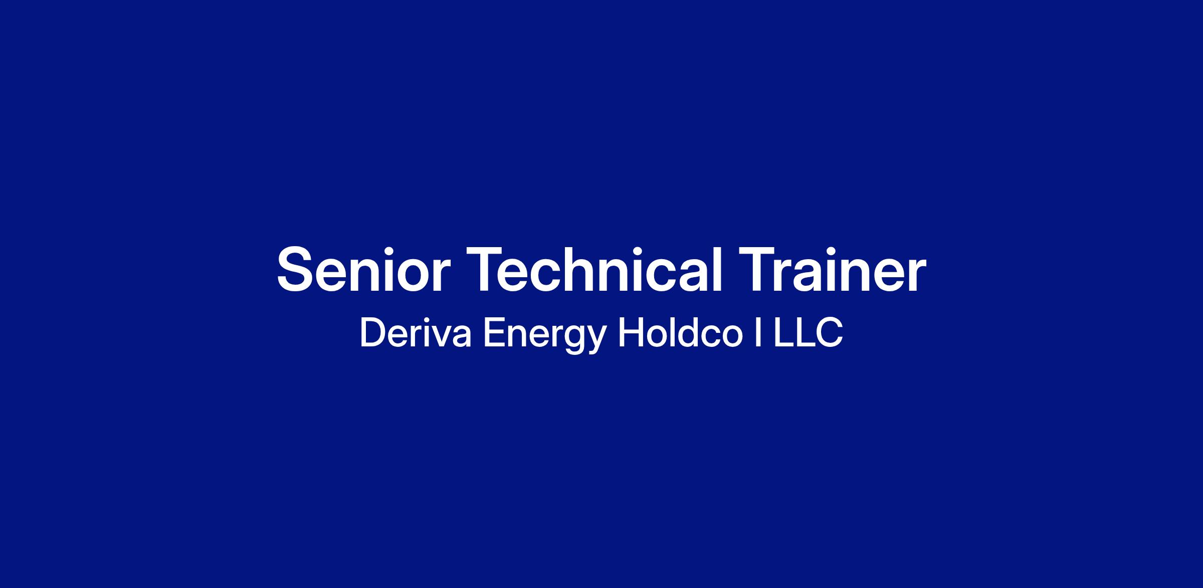 The Senior Technical Trainer at Deriva Energy is a subject-matter expert responsible for developing and delivering advanced technical training for wind, solar, and battery operations across the United States. This role serves as a lead trainer and curriculum specialist, ensuring technicians acquire the knowledge, skills, and abilities required to work safely and effectively in the field. As a senior member of the technical training team, this role mentors’ junior trainers, supports training program design, advises Operations leadership, and drives continuous improvement in workforce readiness and compliance for both internal and external customers.