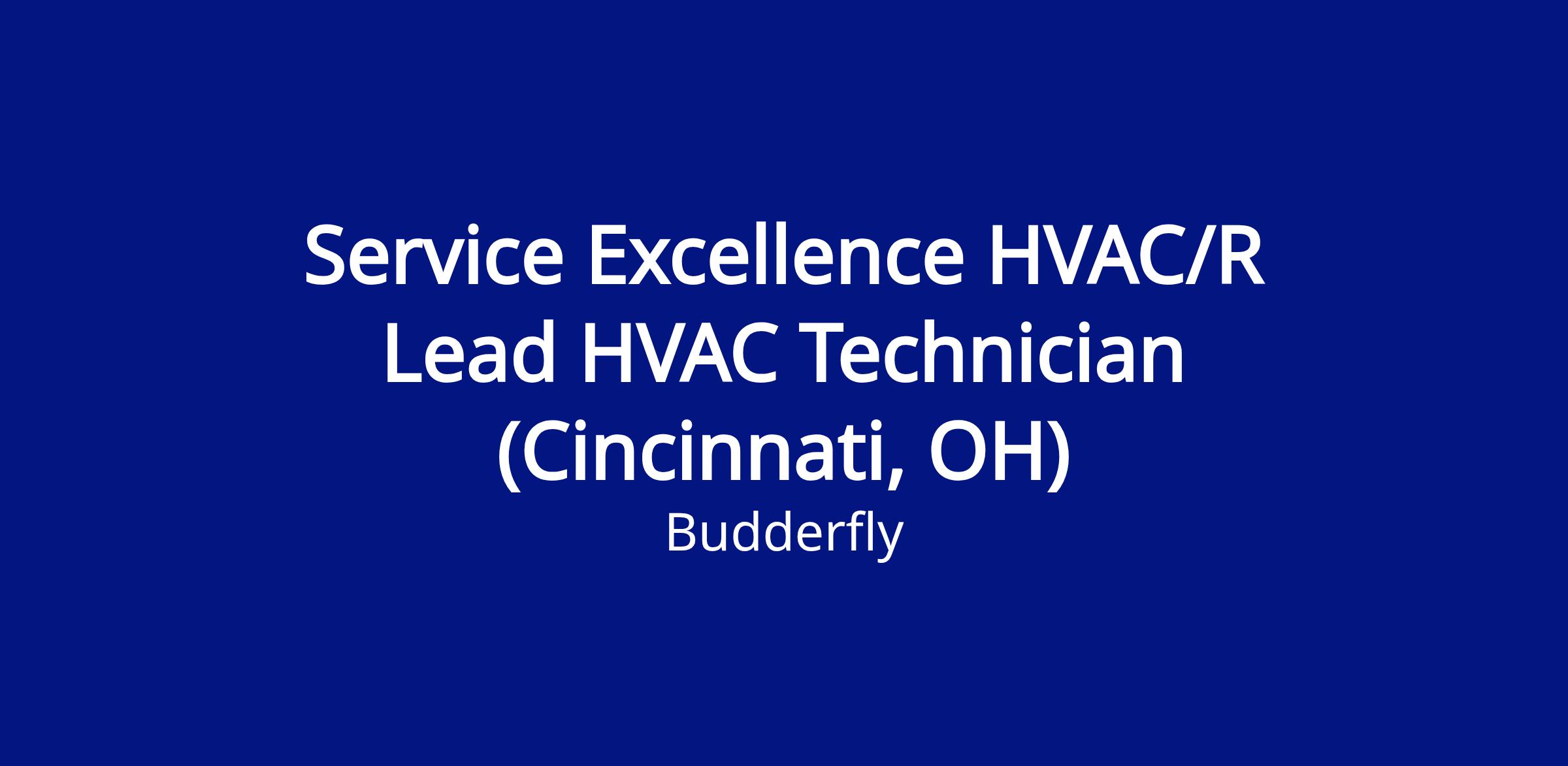 We have an opportunity for a motivated individual to fill the role of a Service Excellence HVAC/R Lead Technician in Cincinnati, OH. In this position, the successful candidate will be responsible for ensuring optimal, efficient operation of the fleet of Budderfly HVAC Units.