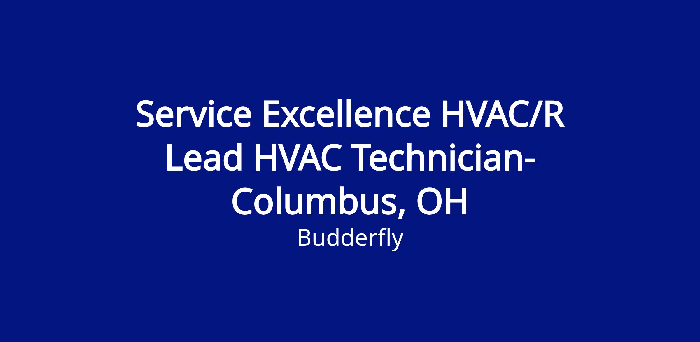We have an opportunity for a motivated individual to fill the role of a Service Excellence HVAC/R Lead Technician in Columbus, OH. In this position, the successful candidate will be responsible for ensuring optimal, efficient operation of the fleet of Budderfly HVAC Units.