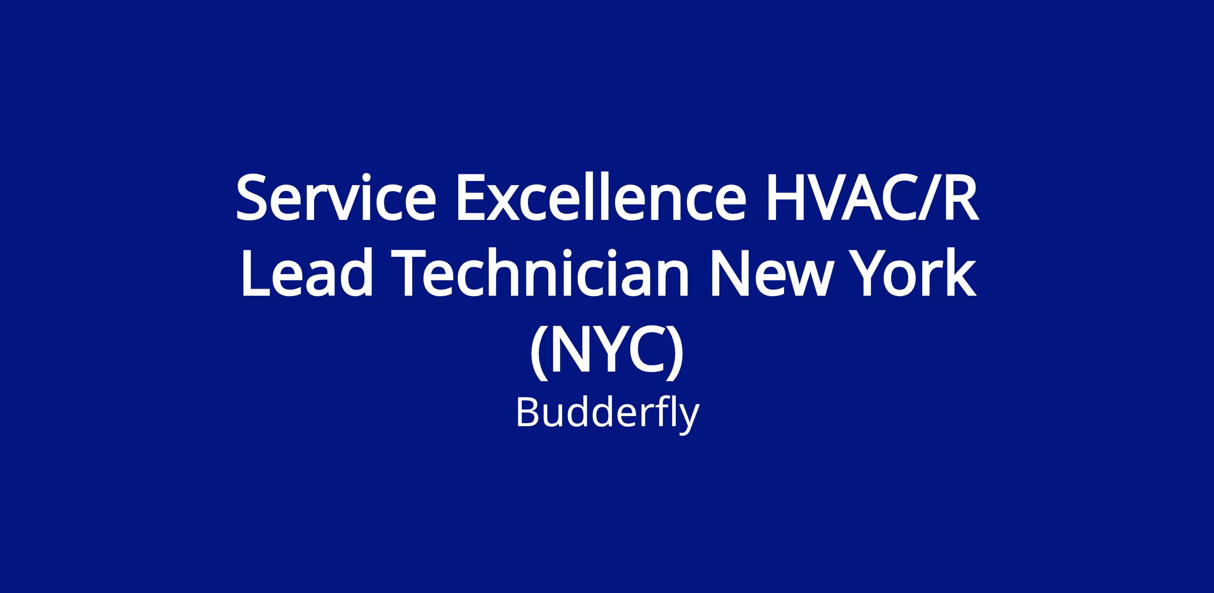We have an opportunity for a motivated individual to fill the role of a Service Excellence HVAC/R Lead Technician in New York (NYC). In this position, the successful candidate will be responsible for ensuring optimal, efficient operation of the fleet of Budderfly HVAC Units. Company vehicle and tools will be provided.