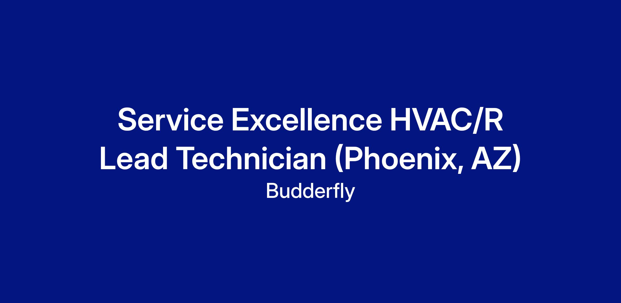 We have an opportunity for a motivated individual to fill the role of a Service Excellence HVAC/R Lead Technician in Phoenix, AZ. In this position, the successful candidate will be responsible for ensuring optimal, efficient operation of the fleet of Budderfly HVAC Units.