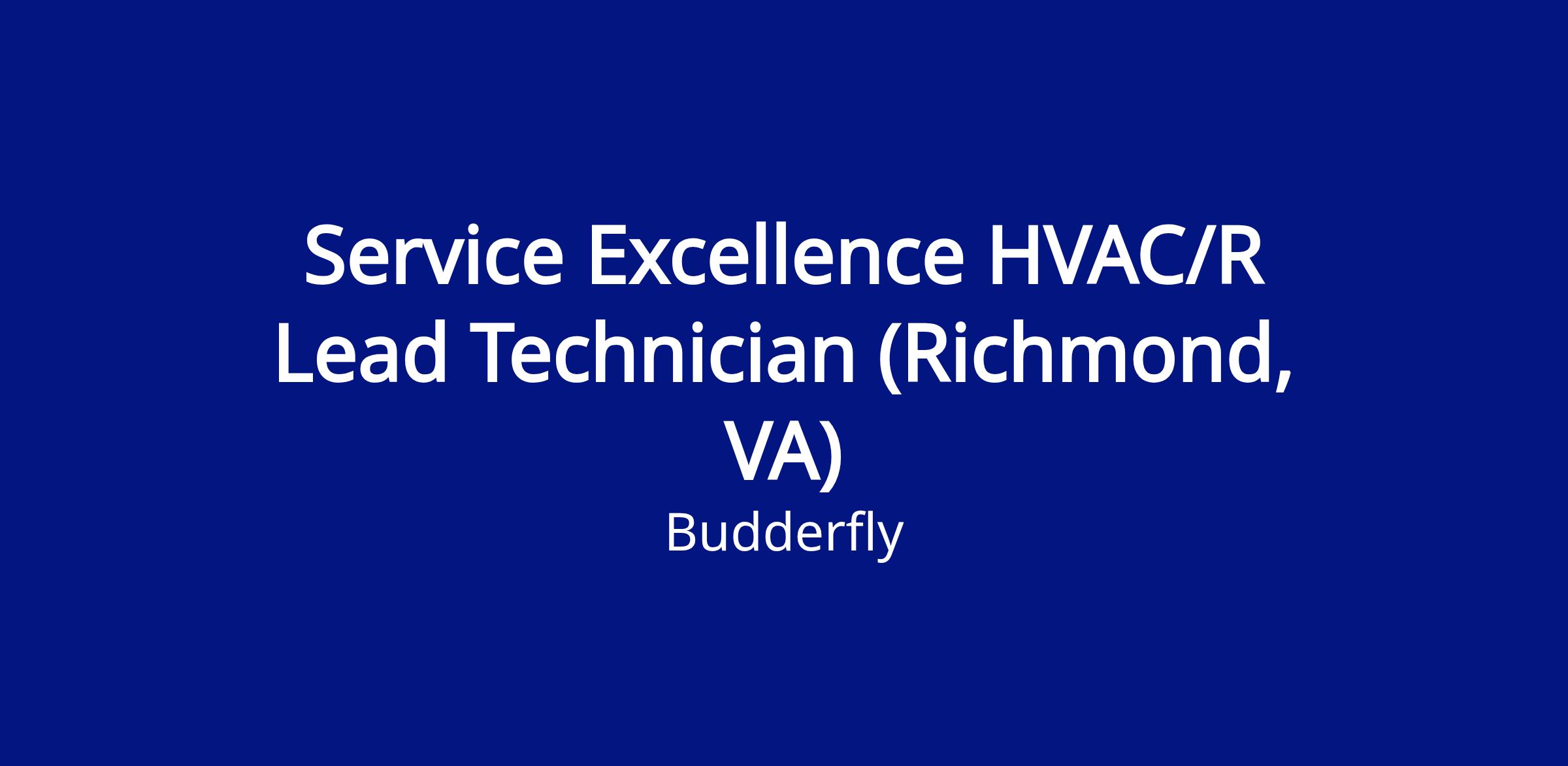 We have an opportunity for a motivated individual to fill the role of a Service Excellence HVAC/R Lead Technician in Richmond, VA. In this position, the successful candidate will be responsible for ensuring optimal, efficient operation of the fleet of Budderfly HVAC Units.