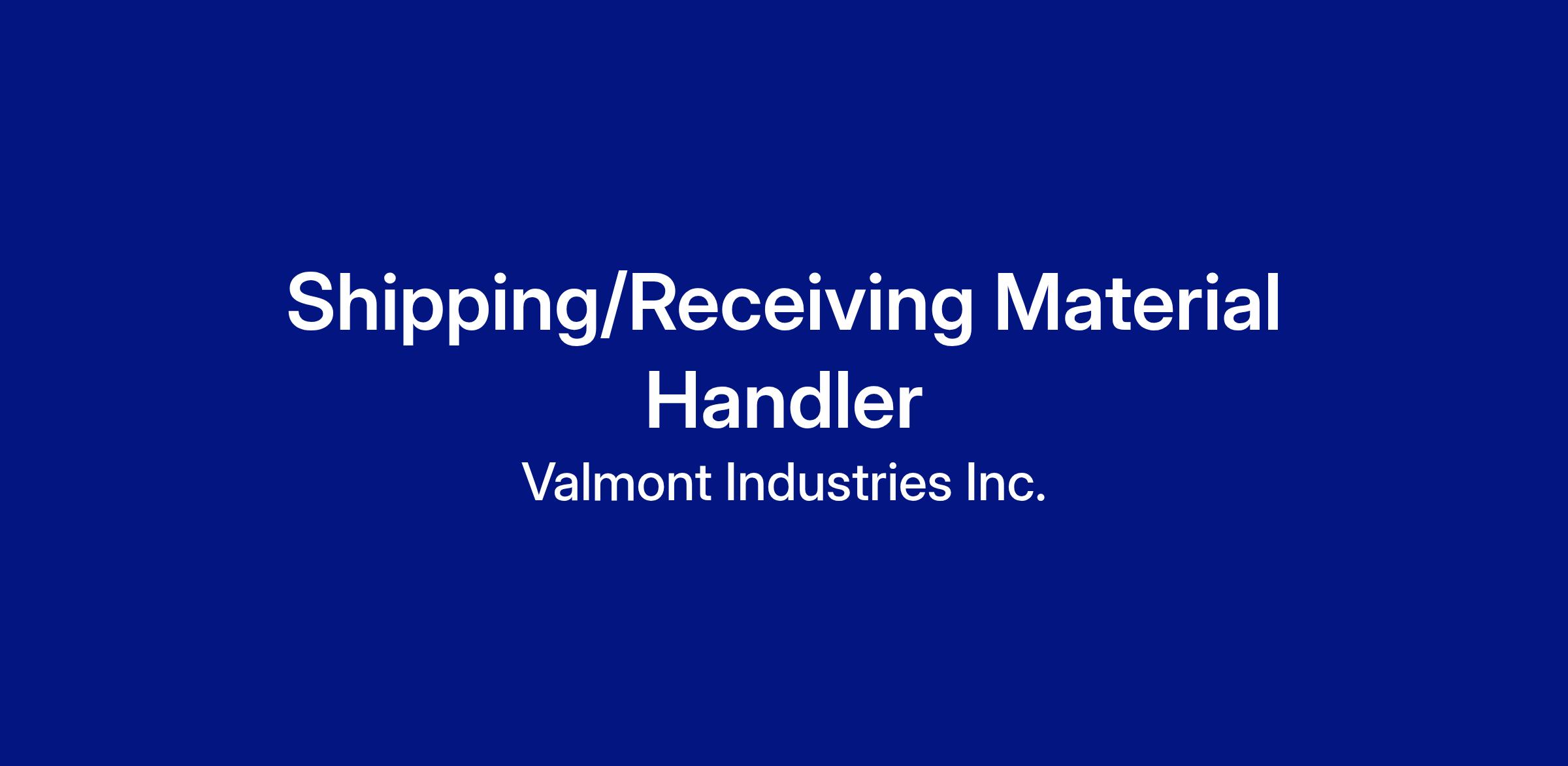 Valmont is currently seeking a highly motivated and talented individual for the Shipping/Receiving Material Handler I position in the Global Coatings Division. We are looking for a highly driven individual that will receive, unload, and store incoming product loads as well as inspect for damage and defects to ensure a high quality finished product. Additionally, you will…