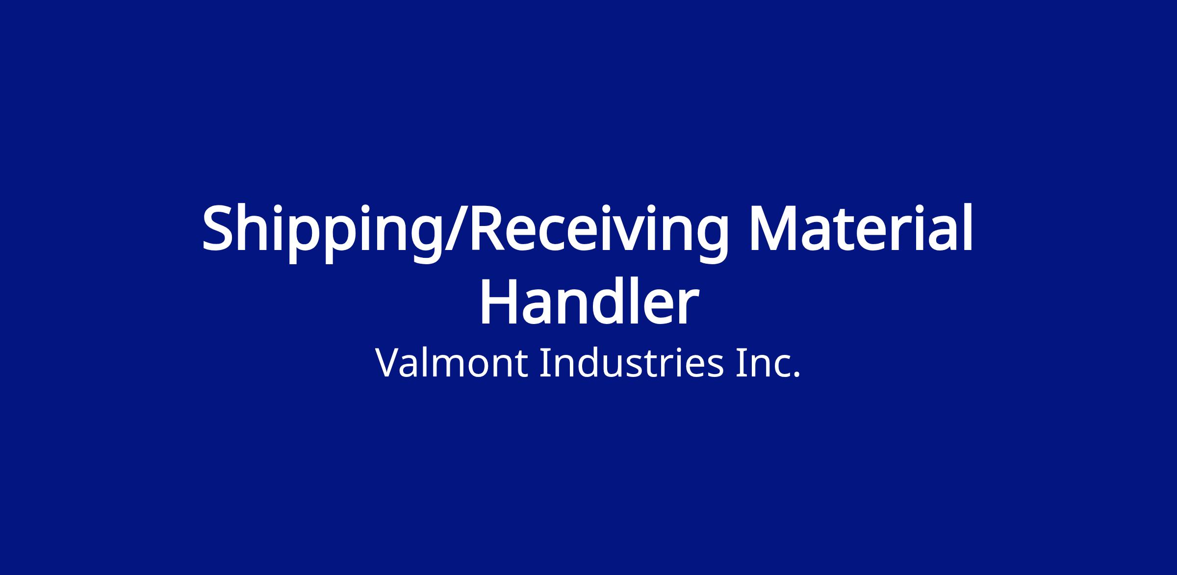 This is an individual contributor position responsible for receiving, unloading, and storing incoming product loads and inspecting finished products for damage and defects. The incumbent will operate equipment used to move material including forklifts and shag trucks. They will be responsible for identifying material and product being loaded and unloaded. The incumbent will create tags for products being unloaded, which may involve taking notes and pictures and entering that information into the computer. Incumbent will be responsible for inspecting galvanized product to ensure a high quality finished product and making recommendations to resolve any damage or defects found in products. Interact with customers and truck drivers, coordinating special handling as a result of an inspection , general plant housekeeping, and work safely with the required Personal Protective Equipment (PPE).
