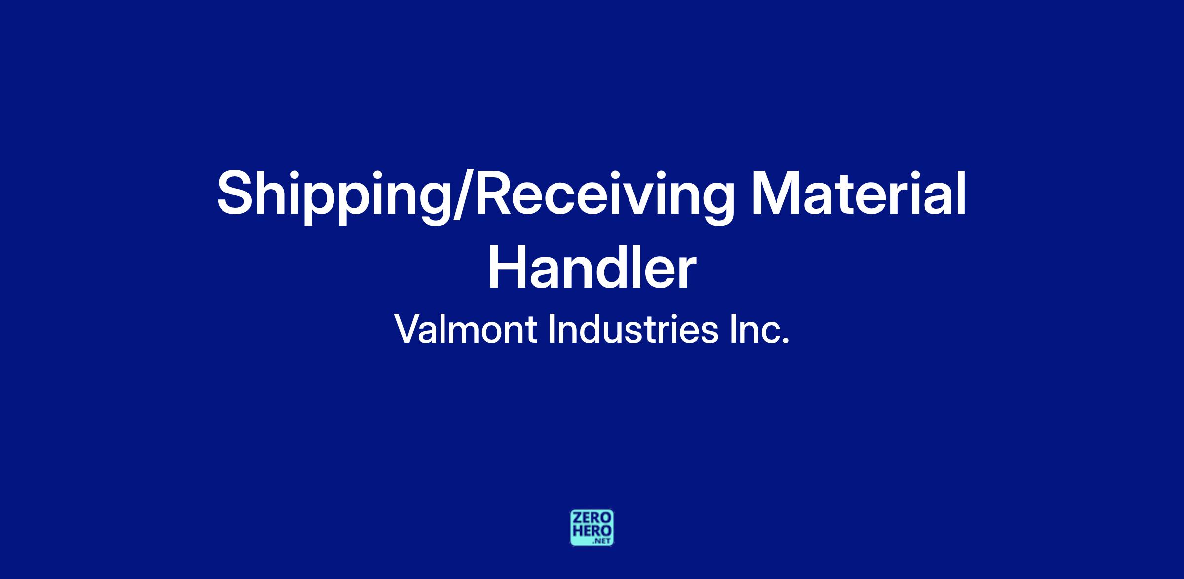 Valmont is currently seeking a highly motivated and talented individual for the Shipping/Receiving Material Handler I position in the Global Coatings Division. We are looking for a highly driven individual that will receive, unload, and store incoming product loads as well as inspect for damage and defects to ensure a high quality finished product. Additionally, you will…