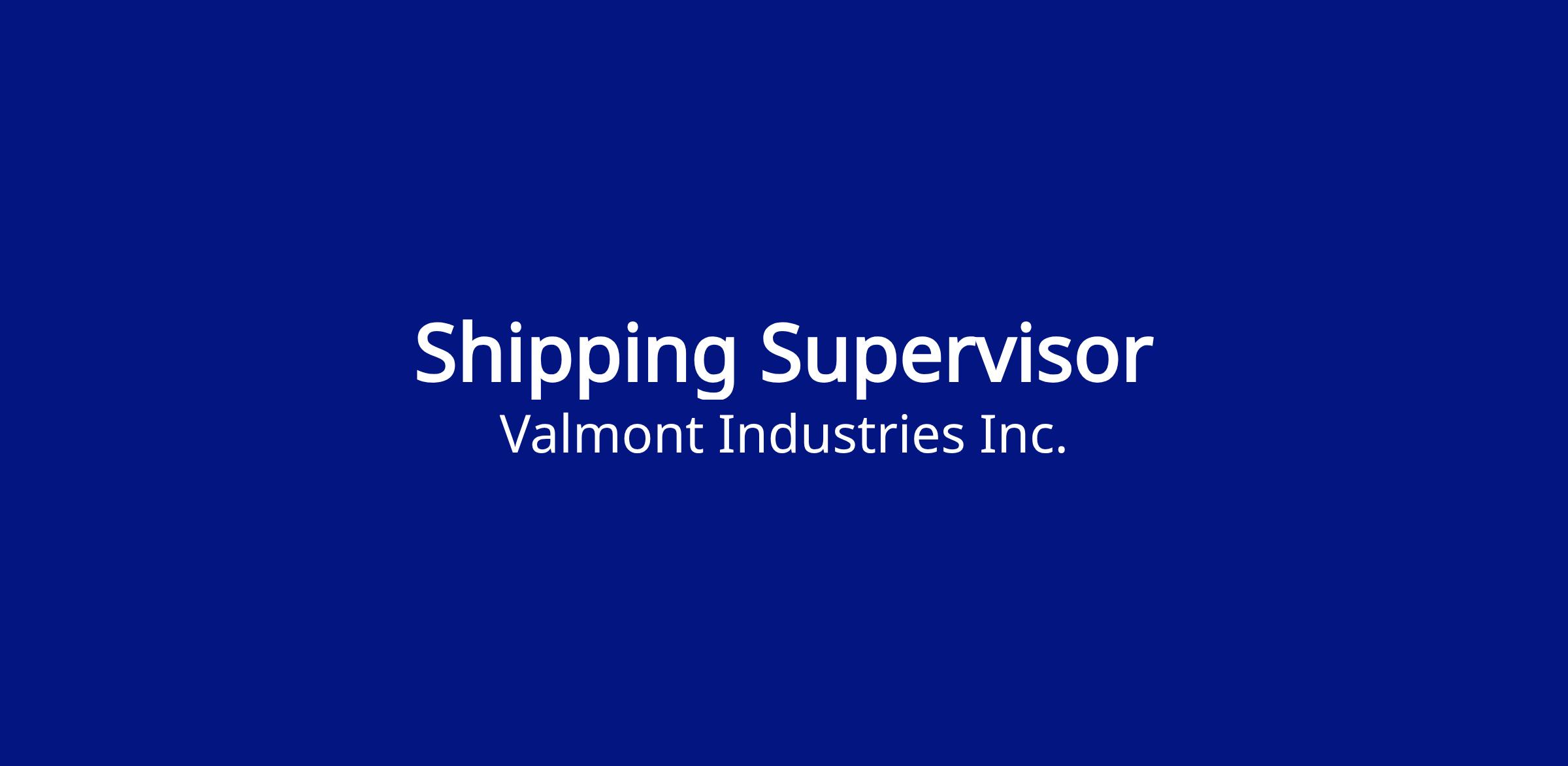 The Shipping Supervisor is responsible for the assigned shipping area including the human and capital assets of the department. Activities include: creating loads, replenishment of inventory, loading of trailers, checking orders, requesting repair work to product, QA inspection requests, preventative maintenance, housekeeping, new-employee orientation as well as various administrative functions including meetings, inventory, production data record keeping, employee annual evaluations, employee attendance records, corrective action warnings all of which must be completed in accordance with established Valmont processes. The Shipping Supervisor is accountable for quality of output and processing in the assigned area. Focus is on providing on time and accurate products/services to internal and external customers. Although most Shipping Supervisors work one established shift, their supervisor duties may extend to two or three operational shifts. The incumbent is held accountable for safety, continuous improvement and lean processing within the area.