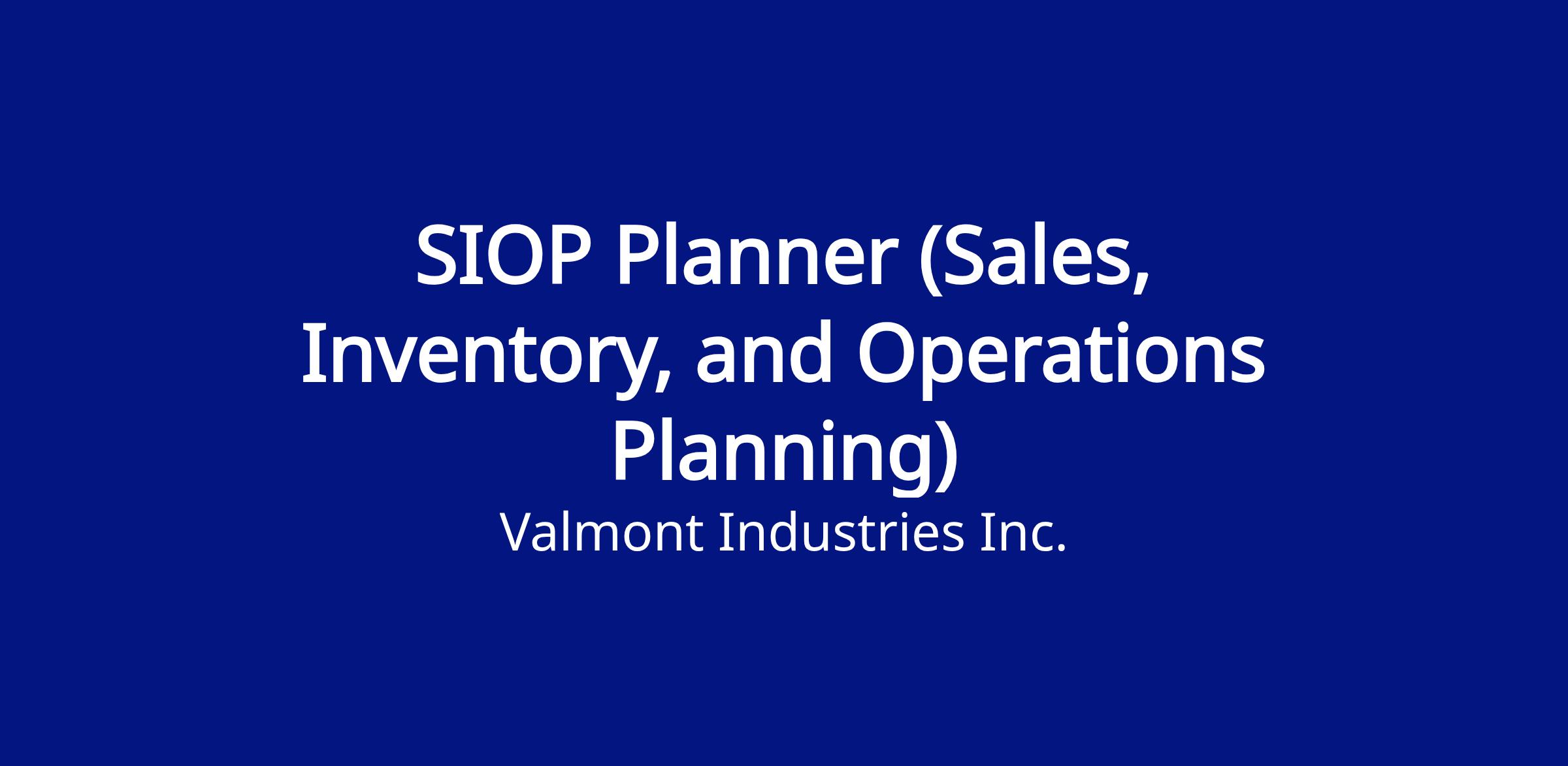 The SIOP (Sales, Inventory, and Operations Planning) Planner – is responsible for product category supply planning activities. This position is responsible for aligning resources to meet demand through effective planning and inventory management processes. Areas of responsibility may include more than one production area or factory location. This Individual Contributor’s responsibilities include 1. Order Coordination and Movement: - Collaborate with cross-functional teams to manage the movement of orders between sites and distribution centers, ensuring optimal allocation based on demand and inventory levels to exceed customer expectations 2. Demand and Supply Balancing: - Work closely with demand planning and sales teams to understand demand forecasts and ensure appropriate supply levels are maintained. - Continuously monitor inventory levels and proactively adjust production and distribution plans to balance demand and supply. 3. Timely Order Release: - Monitor and track orders as they progress through the drafting and engineering processes, ensuring adherence to established timelines. - Identify bottlenecks or potential delays and implement corrective actions to keep orders on track for on-time delivery. 4. Collaborative Scheduling: - Collaborate with site materials teams to create and manage plans that optimize resource utilization and minimize lead times. 5.Performance Metrics and Reporting: - Develop and maintain key performance indicators (KPIs) Generate regular reports on order status, production schedules, and performance metrics, and present findings to management. 6. Continuous Improvement: - Identify opportunities for process improvement within the SIOP framework, and lead or contribute to initiatives aimed at enhancing operational efficiency and customer. Demonstration of the core values of the Valmont Way is required.