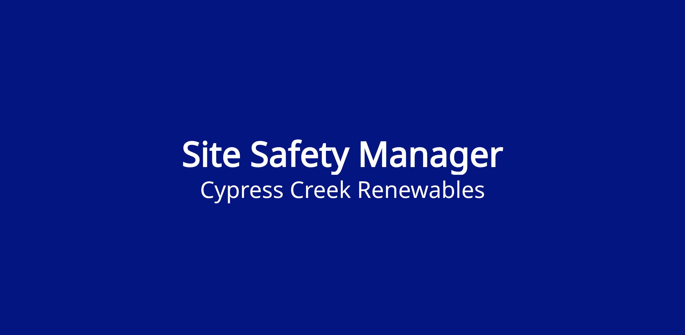 Cypress Creek Renewables is seeking an experienced Site Safety Manager to support the construction of a utility-scale solar project. This role serves as the on-site safety leader and owner’s representative, responsible for overseeing all aspects of site safety performance and ensuring compliance with federal, state, and local regulations, as well as Cypress Creek Renewables’ HSSE policies and standards.