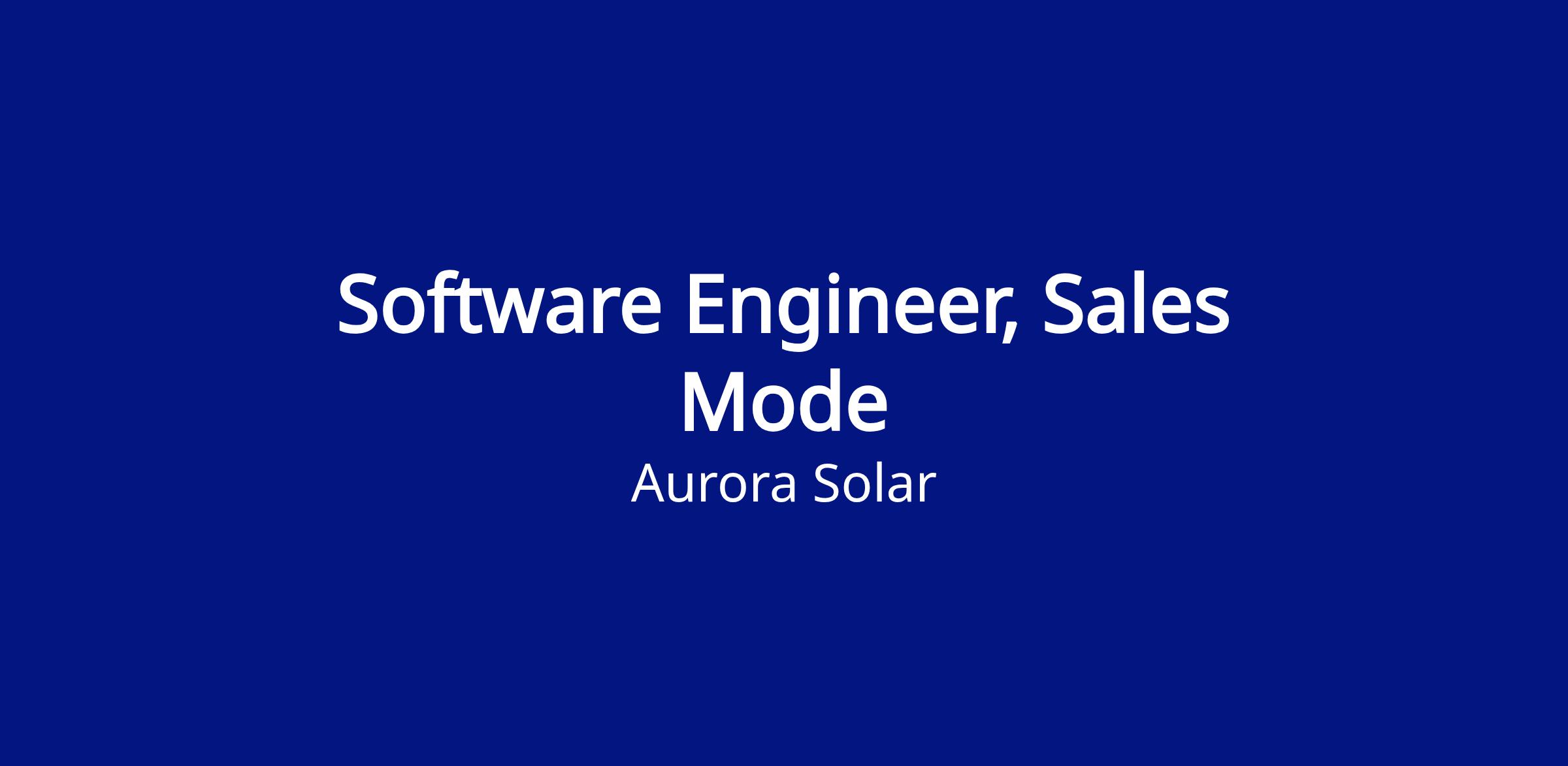 As a Software Engineer on the Sales Mode team, you’ll help build and improve the systems that power Aurora’s solar sales experience. You’ll work on customer-facing features, contribute to backend services, and collaborate closely with product managers, designers, and fellow engineers to deliver thoughtful, reliable solutions.