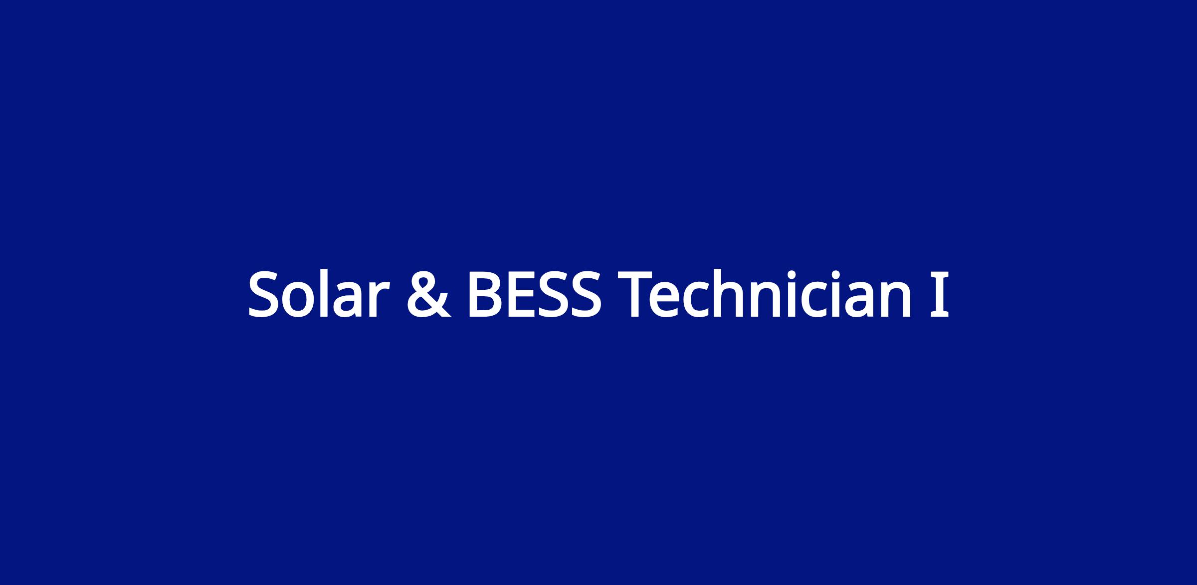 AES CE is an established and rapidly growing renewable energy company with regional headquarters located in Salt Lake City, UT. This position will cover assigned O&M activities associated with the solar PV sites and substations associated with the utility-scale Solar Energy Plants located in Southern California. Primary sites are in the Antelope Valley area located in North Los Angeles County. The AES Operations team is looking for a Solar/BESS Technician with Preventative & Corrective maintenance experience. This individual would play a pivotal role in ensuring that AES CE operates the portfolio to standards that exceed industry best-practice. The ideal candidate will be a self-starter, and have the ability to take direction from Field Service leads. As AES CE grows to become one of the leading IPPs in the industry, this role will provide an unparalleled opportunity for professional growth.