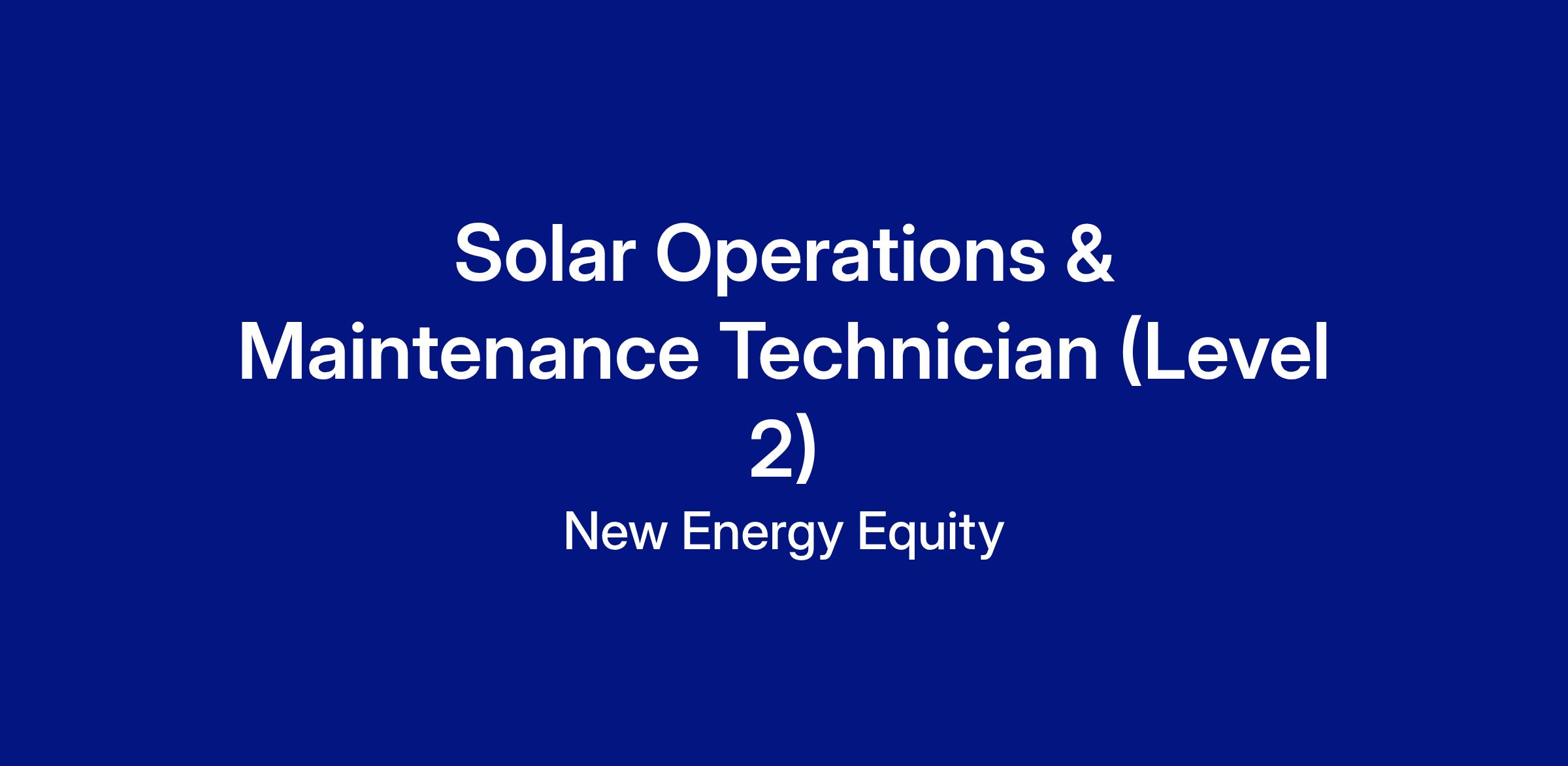 The Solar O&M Technician (Level 2) is responsible for performing advanced inspections, preventative maintenance, and troubleshooting on solar energy systems. The Solar O&M Technician (Level 2) will work independently and provide guidance to junior technicians to ensure safe and efficient operation of solar power plants.