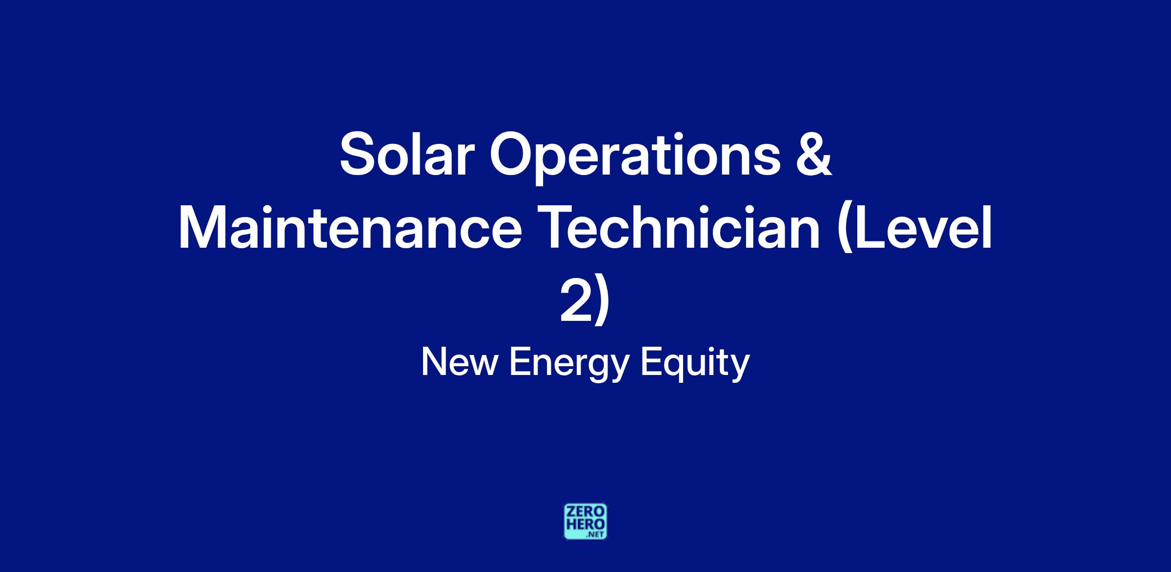 The Solar O&M Technician (Level 2) is responsible for performing advanced inspections, preventative maintenance, and troubleshooting on solar energy systems. The Solar O&M Technician (Level 2) will work independently and provide guidance to junior technicians to ensure safe and efficient operation of solar power plants.