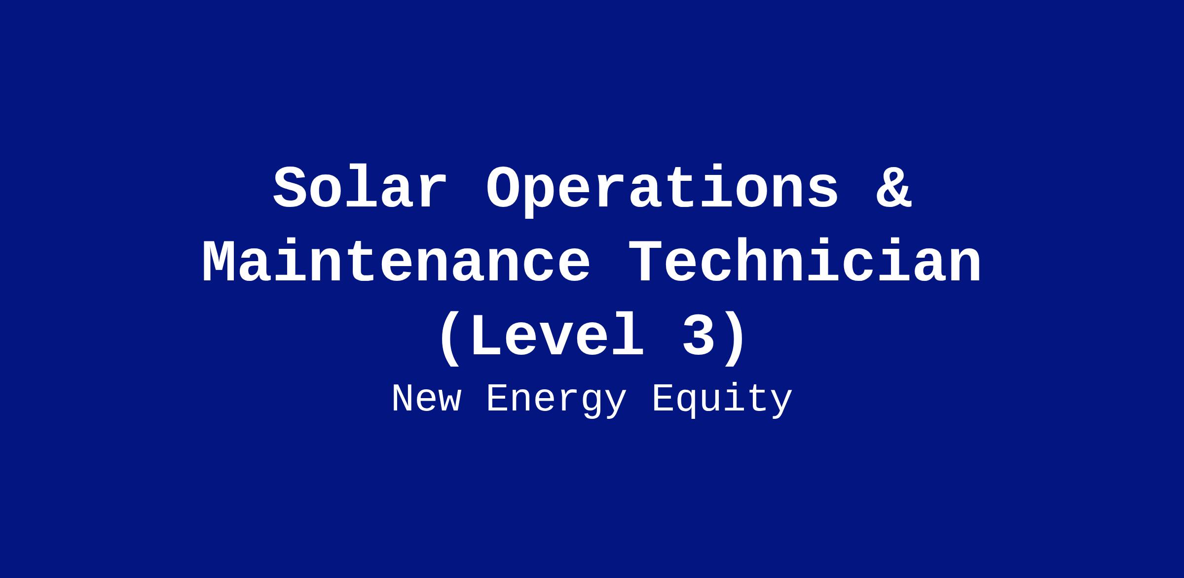 Are you a skilled electrician with a passion for renewable energy? Do you enjoy troubleshooting complex systems and working outdoors? Join Energy Support Services, a subsidiary of New Energy Equity, as an O&M Technician Level 3! In this role, you’ll lead complex inspections, troubleshooting, and repairs on solar energy systems. As a technical expert, you'll provide guidance and training to junior technicians while ensuring our solar projects operate at peak efficiency. If you’re passionate about renewable energy and ready to make an impact, we want to hear from you. Join us and help drive the future of clean energy!