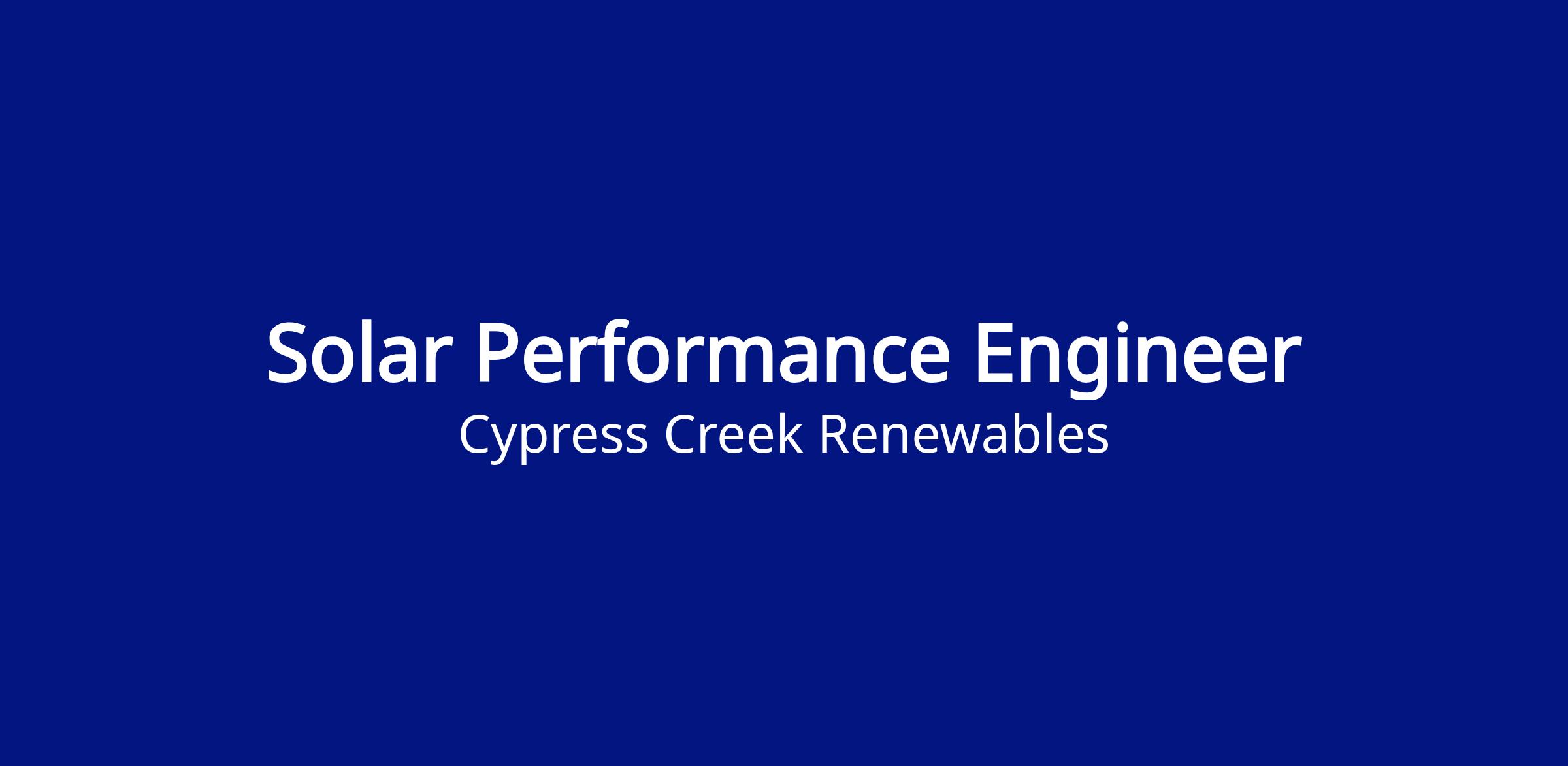 Cypress Creek Renewables seeks a highly motivated candidate for an opportunity to work on a team responsible for the optimization of a fleet of 2+ GW of solar PV assets across the US. The Engineering team sits within the O&M department under the technical services group.