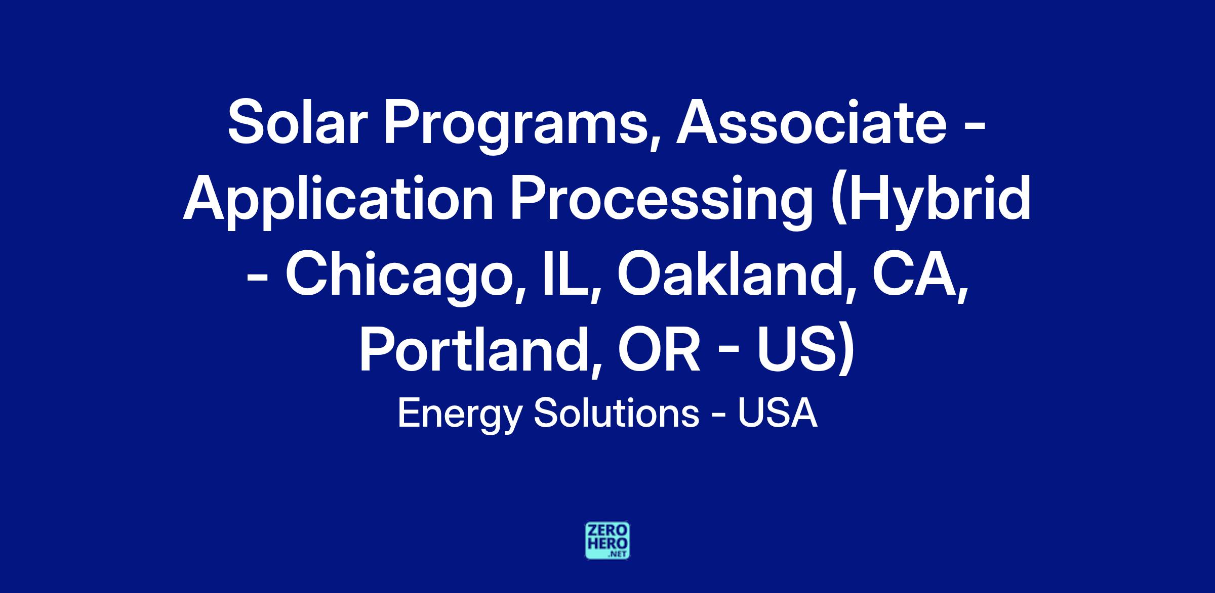 Solar Programs, Associate - Application Processing (Hybrid - Chicago, IL, Oakland, CA, Portland, OR - US)