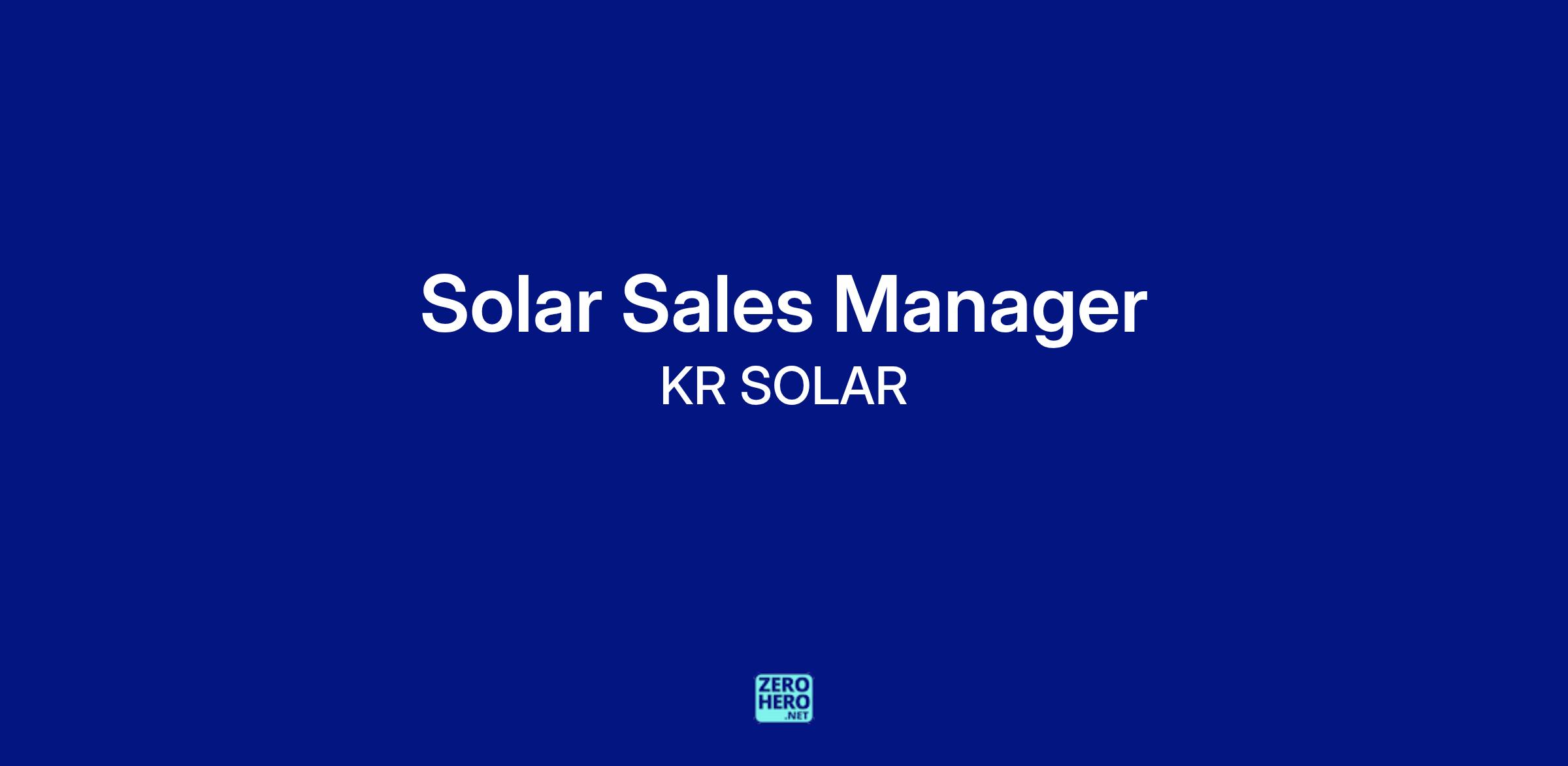 KR SOLAR is seeking an experienced and dynamic Solar Sales Manager to join our team. As a Solar Sales Manager, you will lead a team of solar sales consultants and be responsible for driving sales, achieving targets, and managing customer relationships. You will play a critical role in expanding our customer base and establishing KR SOLAR as a leader in the renewable energy industry.