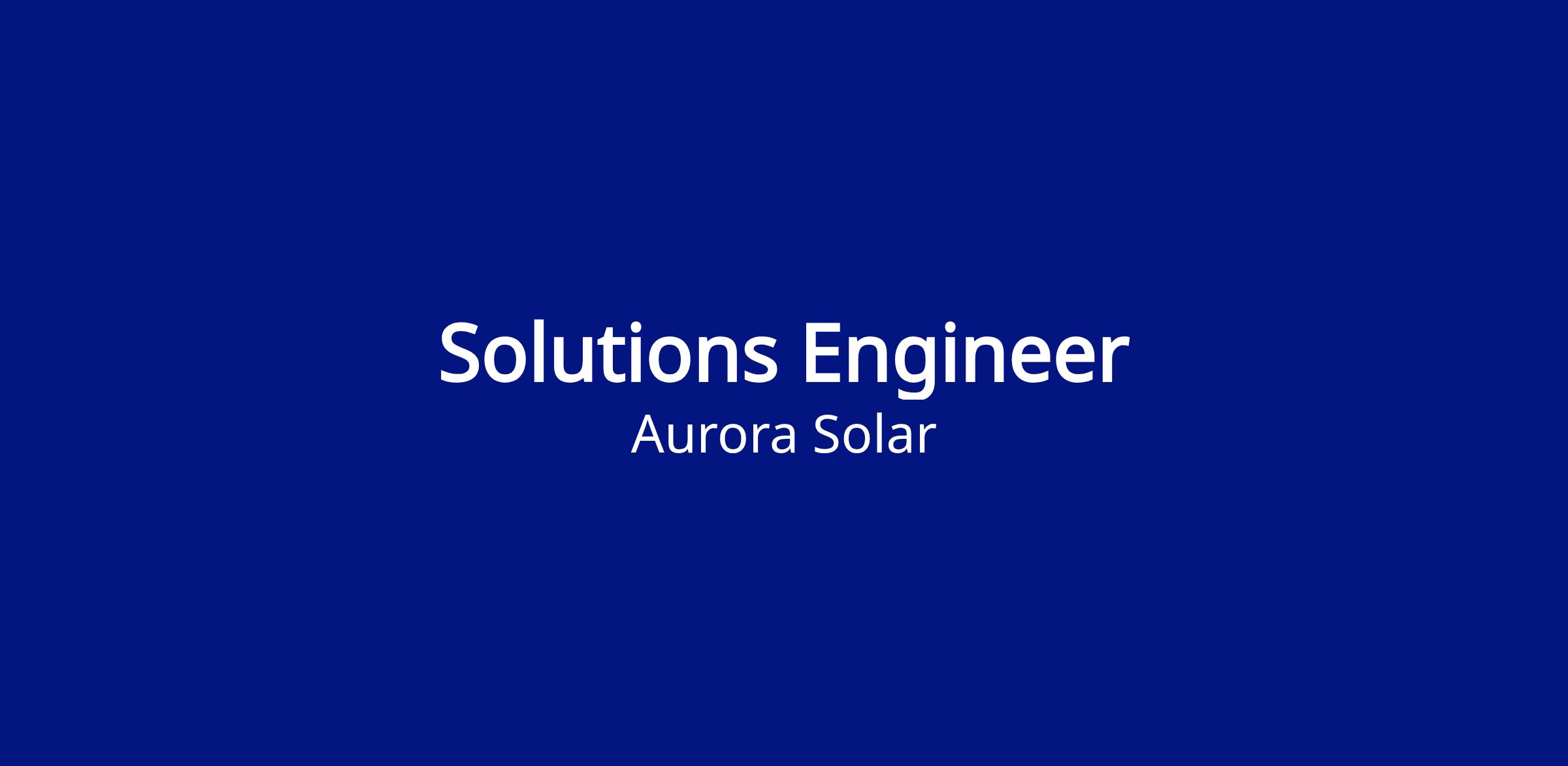 As a Solutions Engineer at Aurora Solar, you’ll support customers throughout their journey from early discovery through onboarding, integration, and ongoing use. You’ll build a strong understanding of Aurora’s platform, APIs, and integrations through hands-on customer work, mentorship, and collaboration with senior team members.